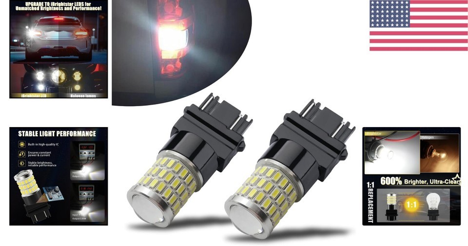 - Super Bright 3157 LED Bulb, Xenon White 6000K, 2 Pack for Tail & Brake Lights