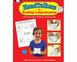 Product description: Your students will practice reading comprehension skills over and over with these 60 short-story HandTalkers. Teach main ideas, details, summarizing, and predicting using this tried and true hand toy. To play, cut and fold the HandTalkers. The student spins the spinner and moves the HandTalker in and out the number of times indicated, hears/reads the short story aloud, and answers the question. Lift the flap to check the answer. HandTalkers are perfect for sending home for practice with a parent or homework helper. 60 pages. Perfect-bound, softcover.