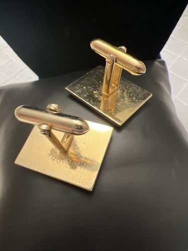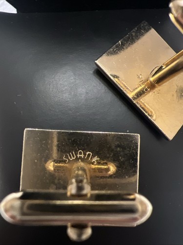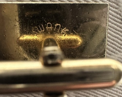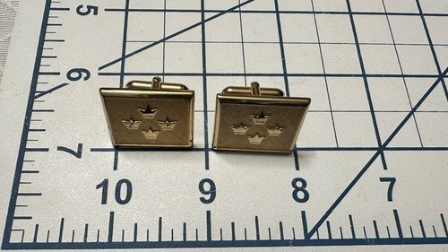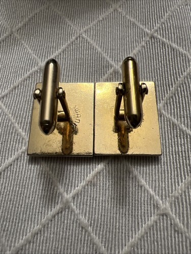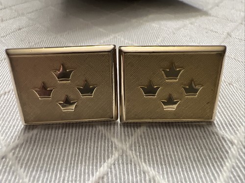 - Swank Gold Tone Rectangular Crown Design Mid Century Cufflinks VTG
