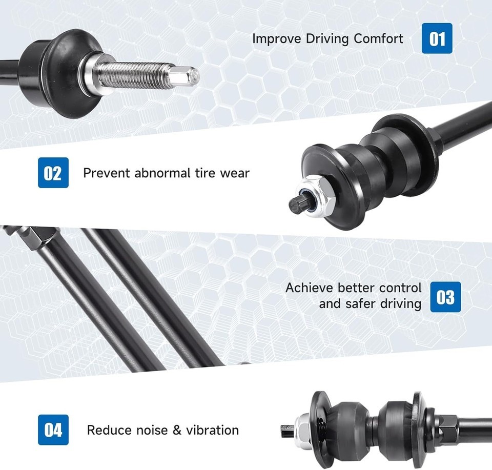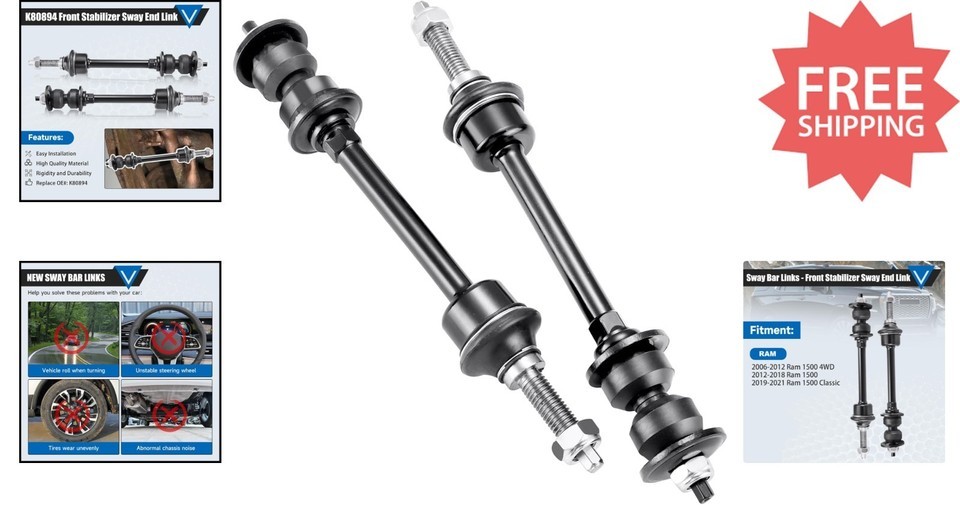 Upgrade your Ram 1500 or Ram Classic with the Tchenpart Sway Bar Link Kit, compatible with models from 2006 through 2021. Designed to enhance vehicle stability and safety, these stabilizer sway bar links reduce vibrations, eliminate knocking sounds, and improve steering control. Easy to install with just a wrench, they serve as perfect replacements for the parts, ensuring a quieter, smoother ride. Backed by a 1- , we offer a satisfaction guarantee with unconditional replacement or refund. Enjoy improved driving comfort and road safety with our durable stabilizer links.
