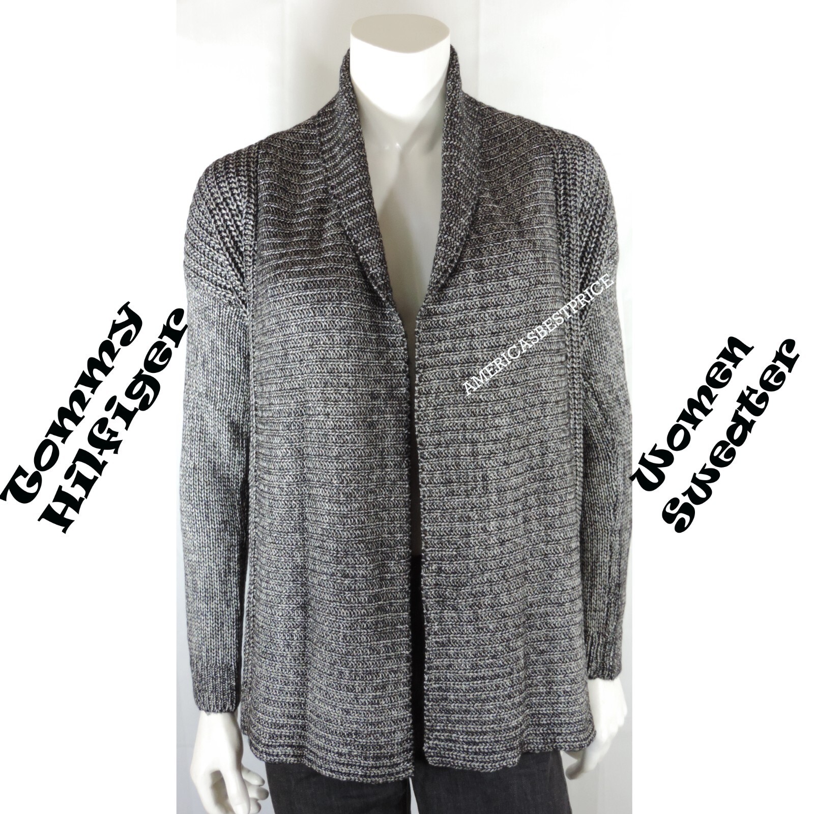 SWEATER PRE-OWNED TOMMY HILFIGER WOMEN'S OPEN FRONT COLOR GRAY / BLACK - SIZE S , L IN EXCELLENT CONDITION WITH THE TAG ATTACH