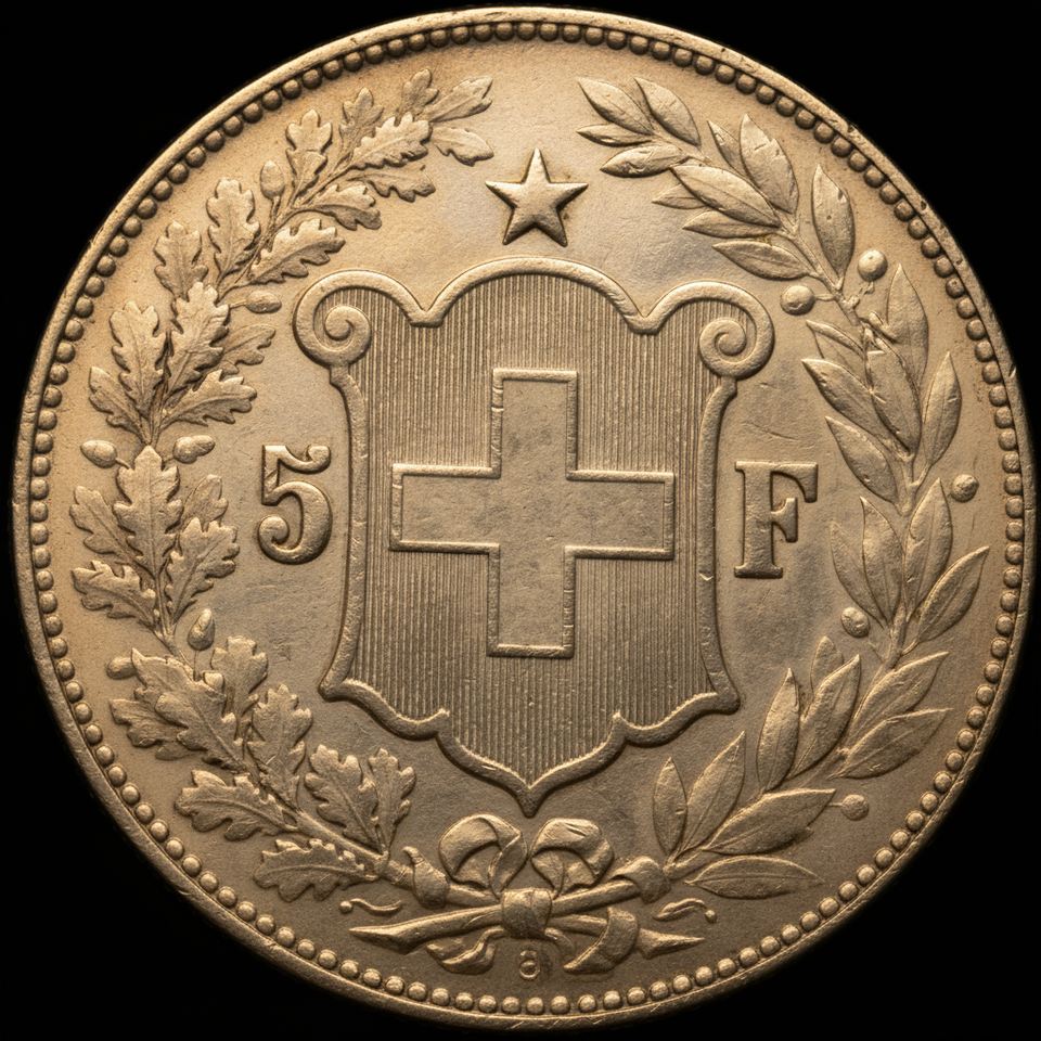 The 5 Fr. fantasy medal with its distinctive shield and star design recalls major motifs in Swiss currency history, combining elegance and exclusivity for true lovers of numismatics.