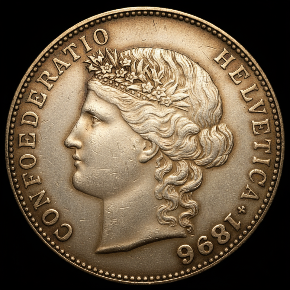 - Swiss 5 Fr. Fantasy Medal Restrike – Plated Numismatic Collectible, Swiss...