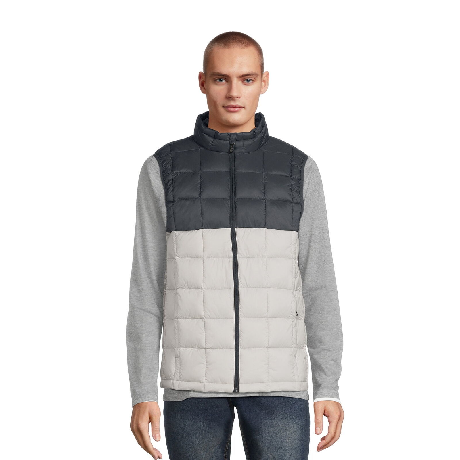 Swiss Tech Men's Puffer Vest, Size L (42-44) Color Sliver/ Greystone This Men's Puffer Vest with all over square quilting by Swiss Tech is big on warmth and durability. It is water repellent and polyfilled to keep you cozy and covered no matter the weather. Featuring a stand up collar, zip front and zipper pockets, this puffy vest for men is just what you need to grab when the weather gets chilly. Wear over your favorite hoodie or sweater and with your favorite jeans or cargo pants. This is a must have for your late Fall to Winter wardrobe.