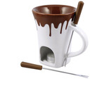 Chocolate just for you. If you feel the need for a little self-indulgence, then you ought to have Swissmar's Nostalgia Fondue Set. Technically it includes two fondue forks, but it's also perfect for a very special dessert for oneself. The ceramic mug is microwave safe, so you can pre-melt your chocolate before you light the candle within to keep the whole mug warm too if you like.