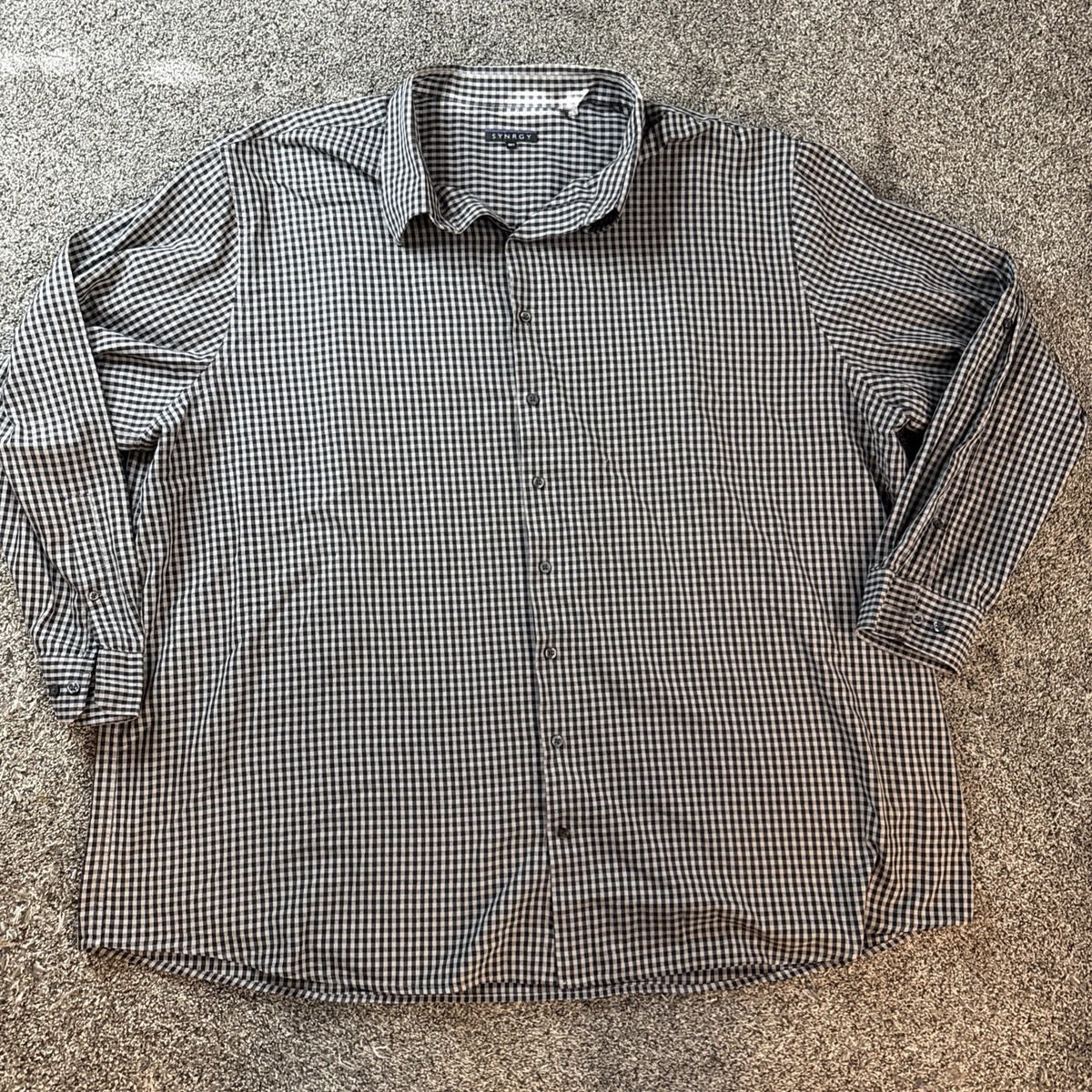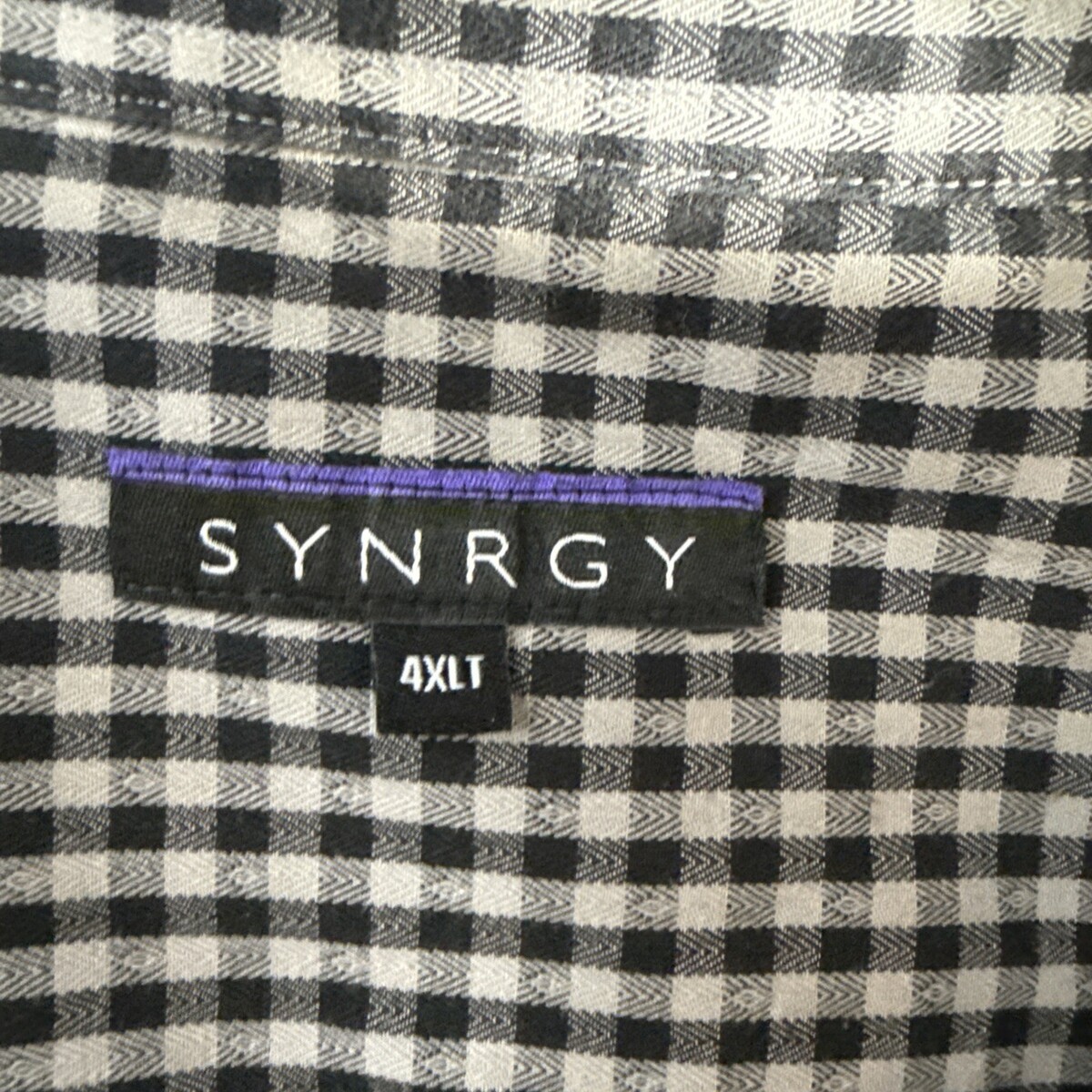 Synrgy Men's Shirt 4XLT Button Down Long Sleeve Shirt Black Gray Checkered. Condition is Pre-owned - Good. Shipped with USPS Ground Advantage.