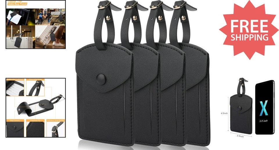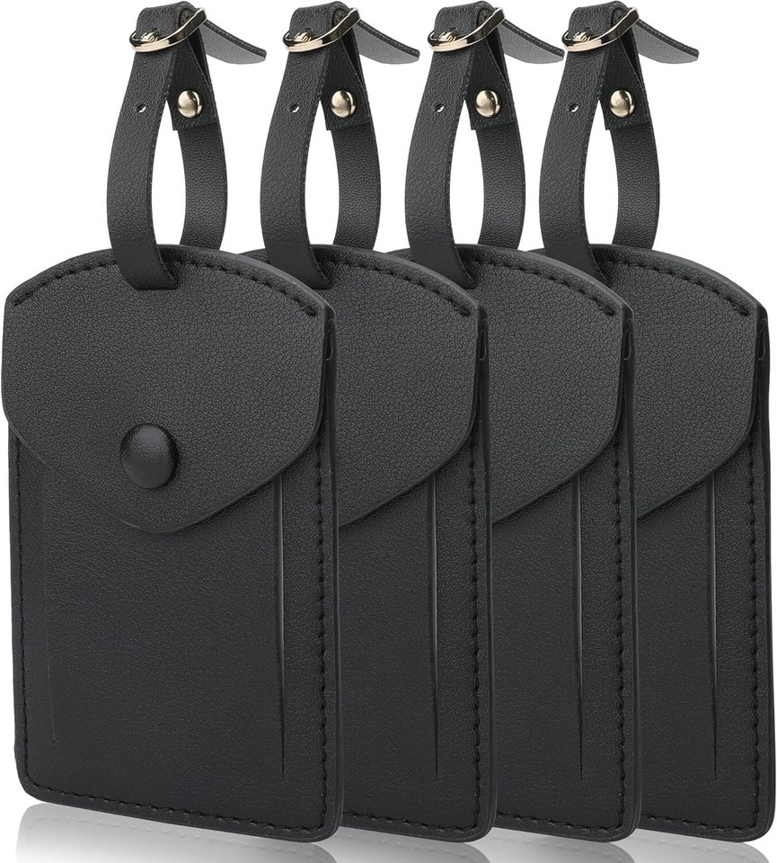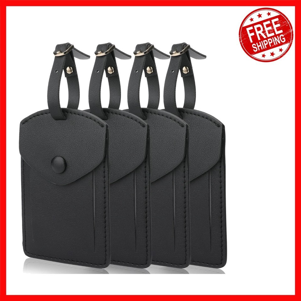 - Synthetic Leather Luggage Tags for Travel - 4 Pack with Privacy Flap