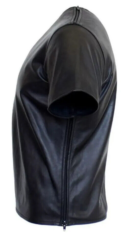 T-shirt da uomo in vera pelle di agnello con cerniera estiva fatta a mano ele...