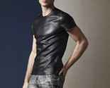 T-shirt uomo pelle nera fatta a mano vera pelle di agnello morbida elegante a...