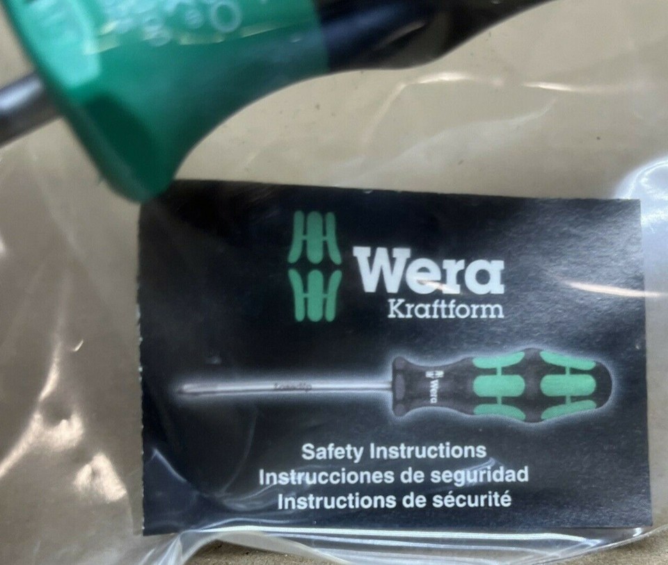FOR SALE IS ONE (1) NEW T20 TAMPER PROOF TORX SCREWDRIVER FROM WERA MPN 05031525002 UPC# 005031525002. MADE IN CZECH REPUBLIC, 4" shaft length, 4" handle length, 8" total length. FEATURES ERGONOMIC WERA KRAFTFORM COMFORT GRIP MADE OF MULTI COMPONENTS WITH NON ROLL FEATURE TO PREVENT TOOL FROM ROLLING OFF YOUR WORK SURFACE. PRECISION MADE HIGH GRADE CHROME VANADIUM MOLYBDENUM STEEL SHAFT, THROUGH HARDENED CHROME PLATED. SLIGHTLY MAGNETIZED TIP WITH BOREHOLE IN TIP END FOR A PERFECT FIT EVERY TIME. THIS LINE OF PRECISION TORX T20 TAMPER PROOF (6 point lobe or 6 point) SCREWDRIVER FROM WERA IS PREMIUM QUALITY, AND WILL LAST A LIFETIME. YOU WILL RECEIVE ONE (1) T20 TAMPER PROOF TORX SCREWDRIVER FROM WERA SHIPPED BY USPS FIRST CLASS MAIL .....