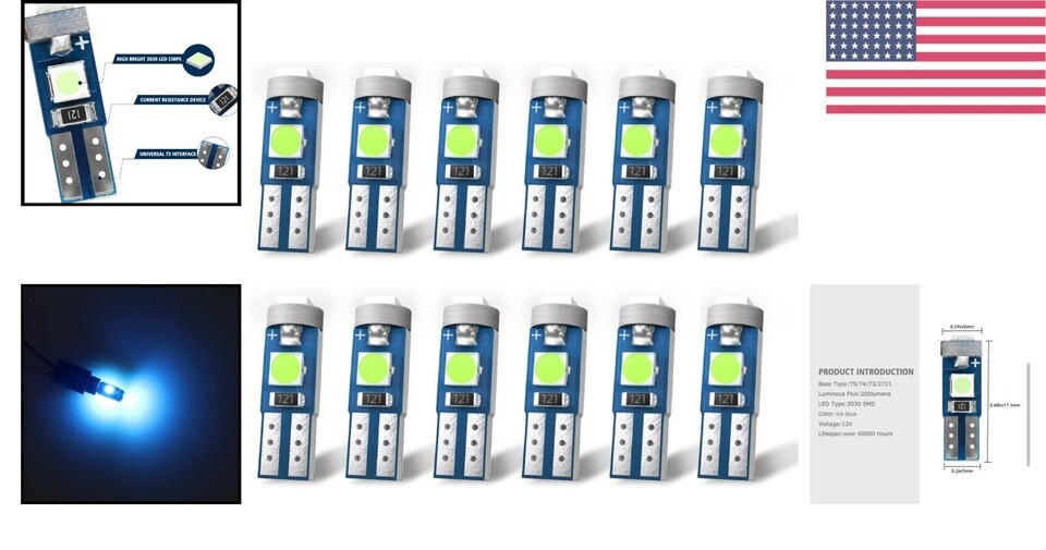 Primary image for T5 LED Bulbs (12 Pack) Ice Blue - 3030 Chipset for Superior Dashboard Visibility
