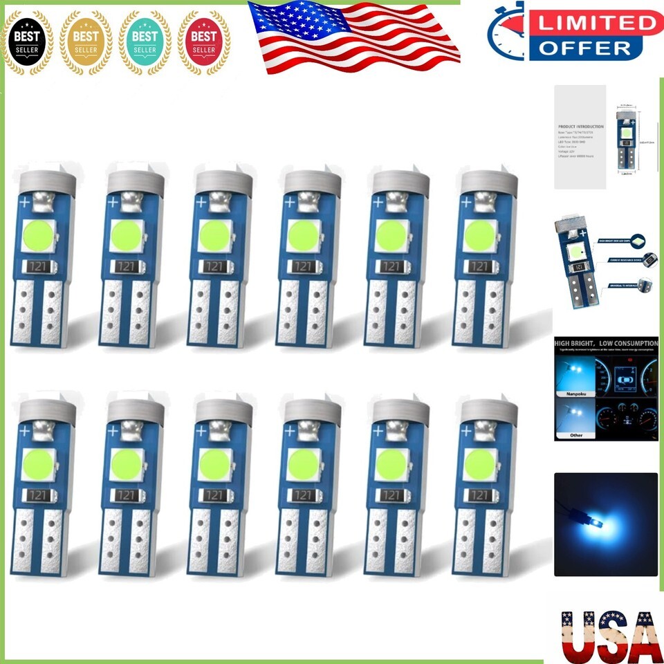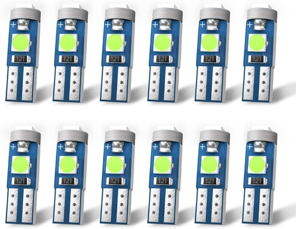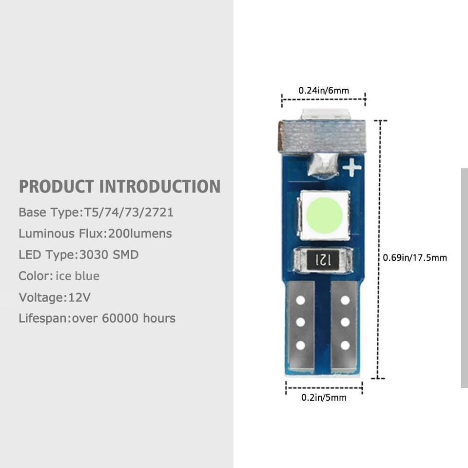 T5 LED Bulbs (12 Pack) Ice Blue - 3030 Chipset for Superior Dashboard Visibility