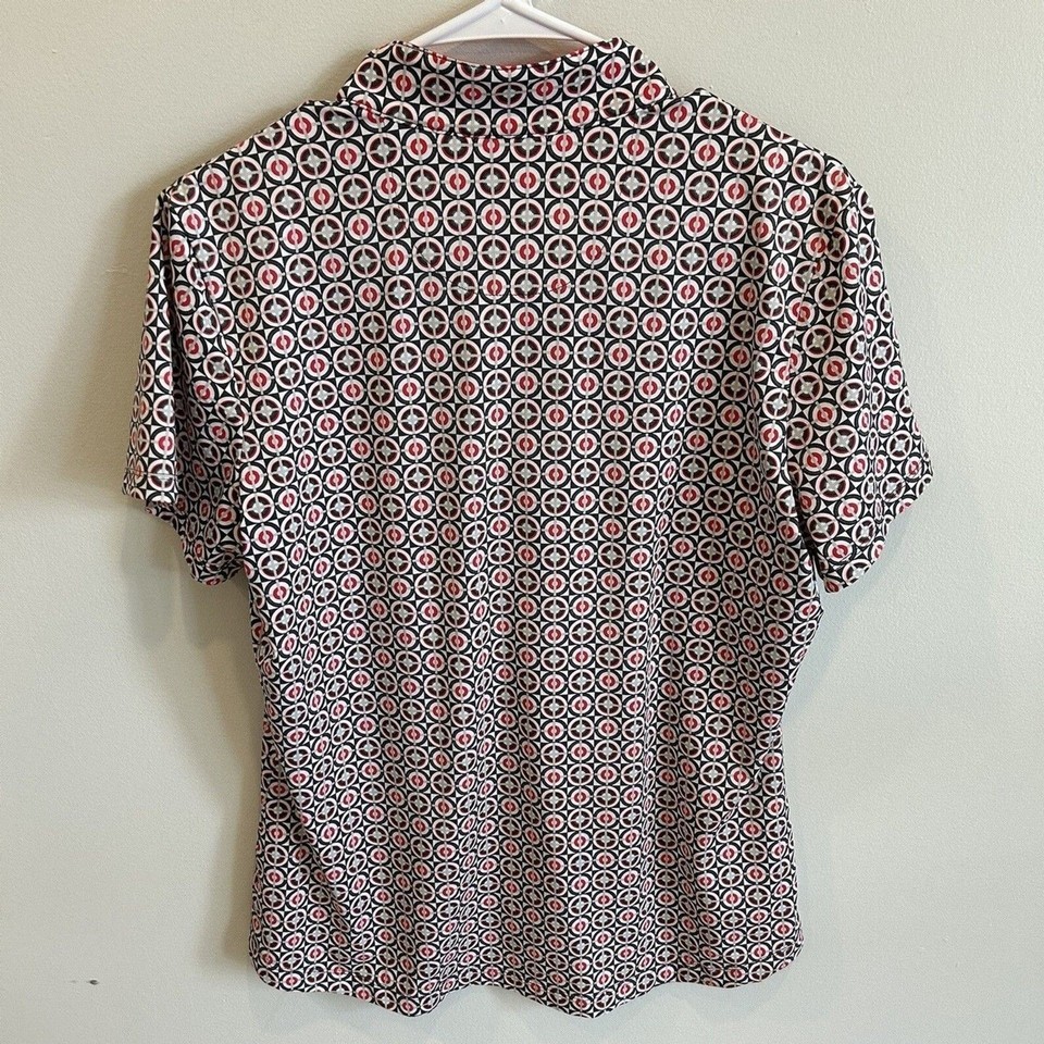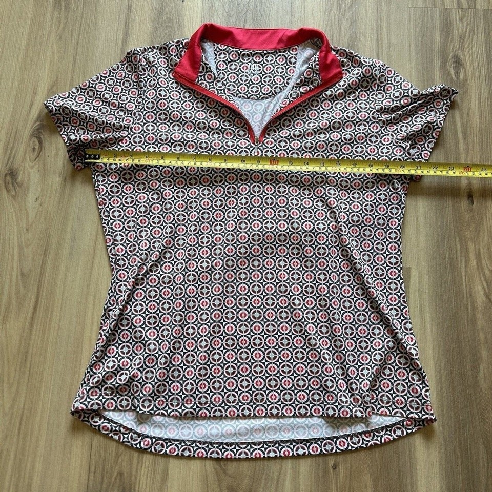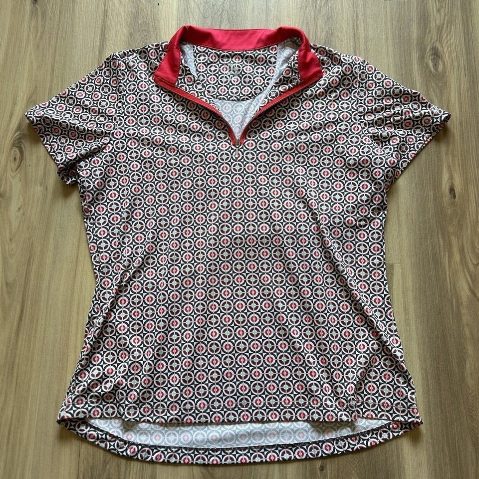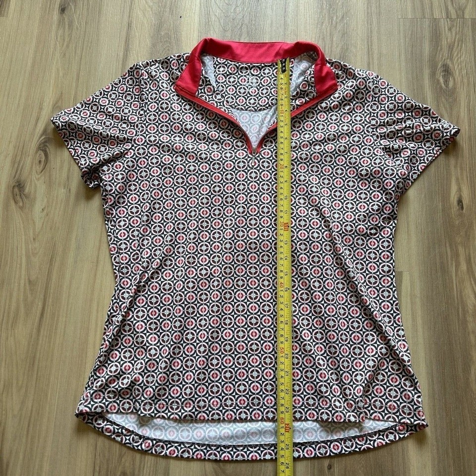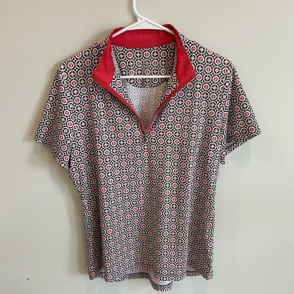 * TAIL White Label polo shirt - great for golf, tennis, pickleball and more * Size: Large * Color: Printed design consisting of black, red, white and gray * Material: 92% Polyester, 8% Spandex * 1/4 zip closure * Machine Washable * Made in Taiwan * Great Condition: Item is in clean, very gently used pre-owned condition. No rips, stains or tears. Please see photos for complimentary measurements. Item will ship USPS Ground Advantage unless buyer would prefer to expedite for an additional cost. Please feel free to reach out with any questions!