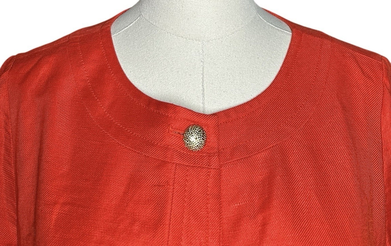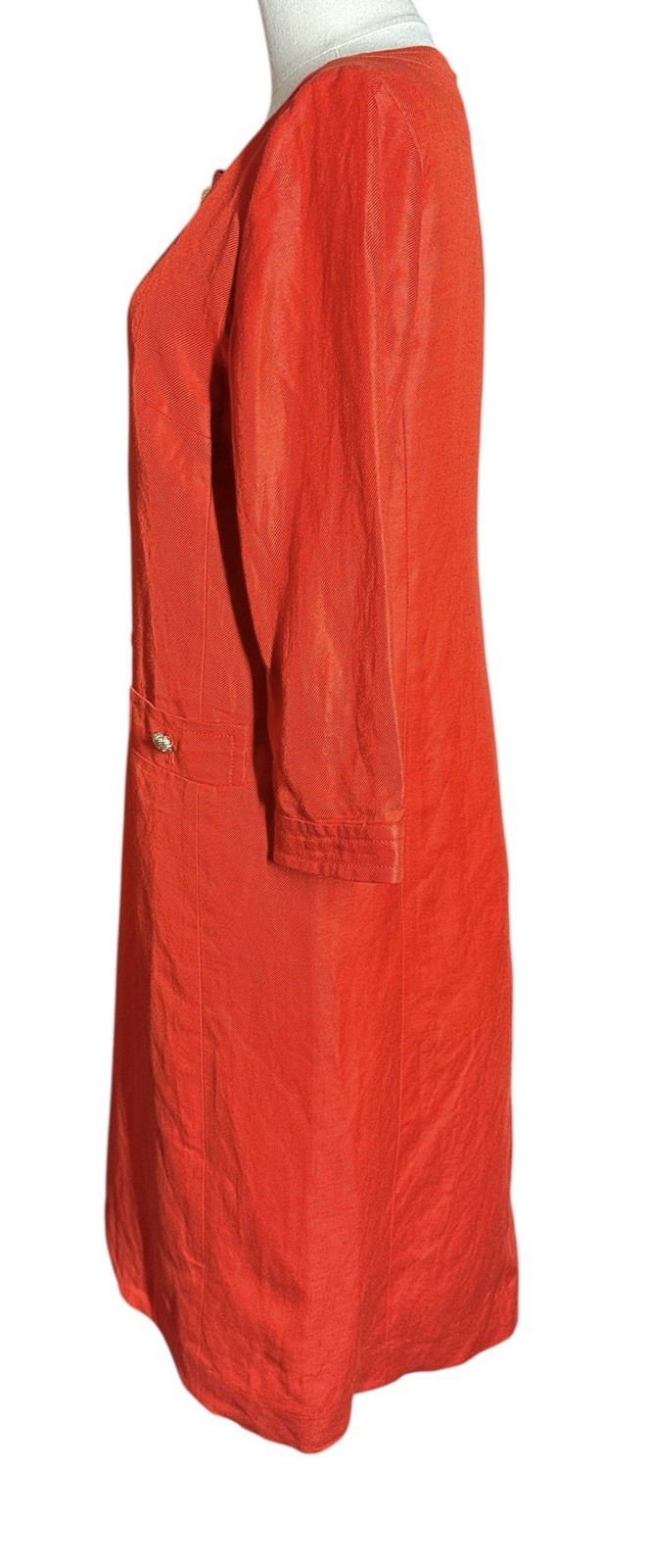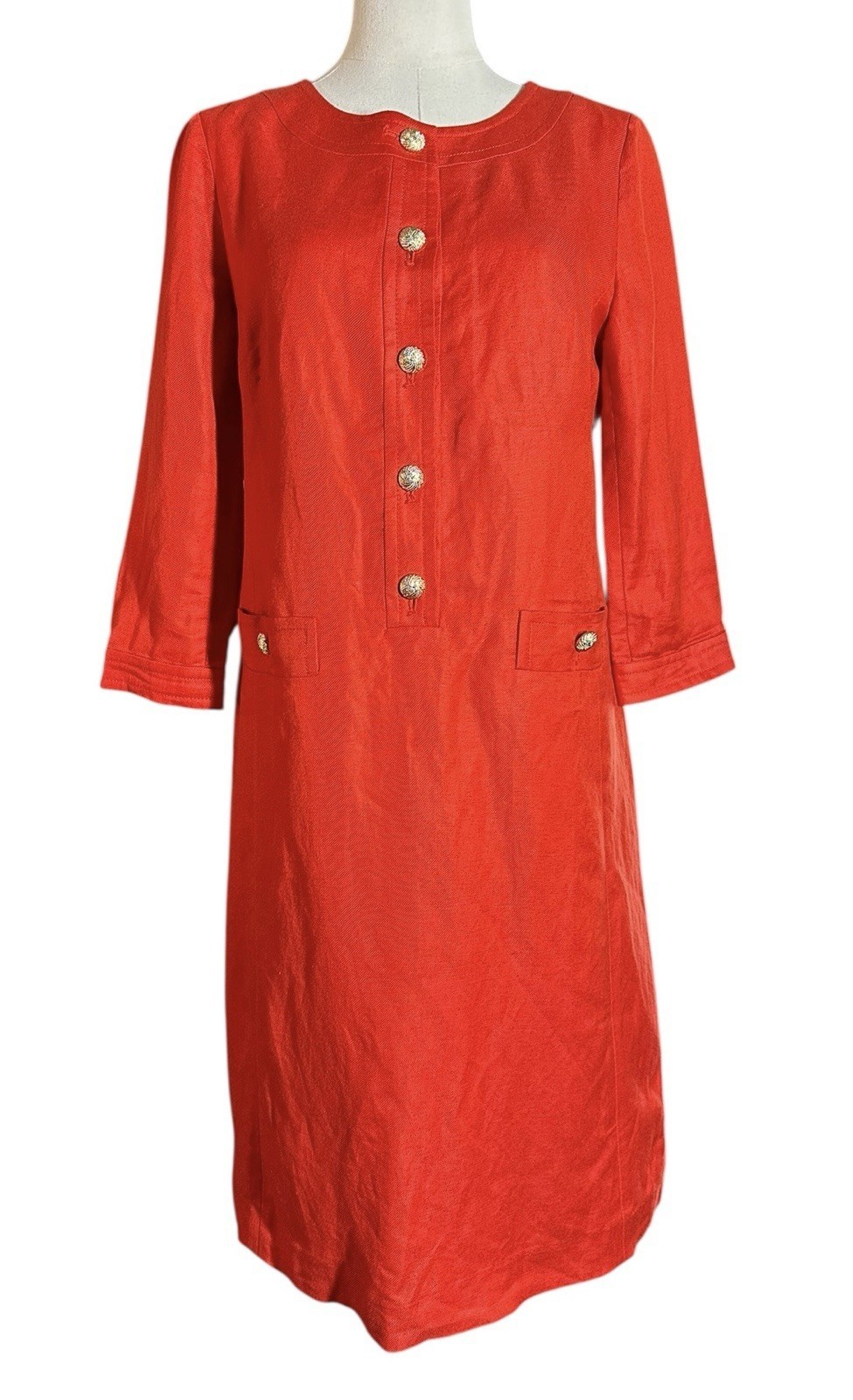 Primary image for TALBOTS Dress Womens 6 Linen Blend 3/4 Midi Length Orange Gold Buttons Mod Lined