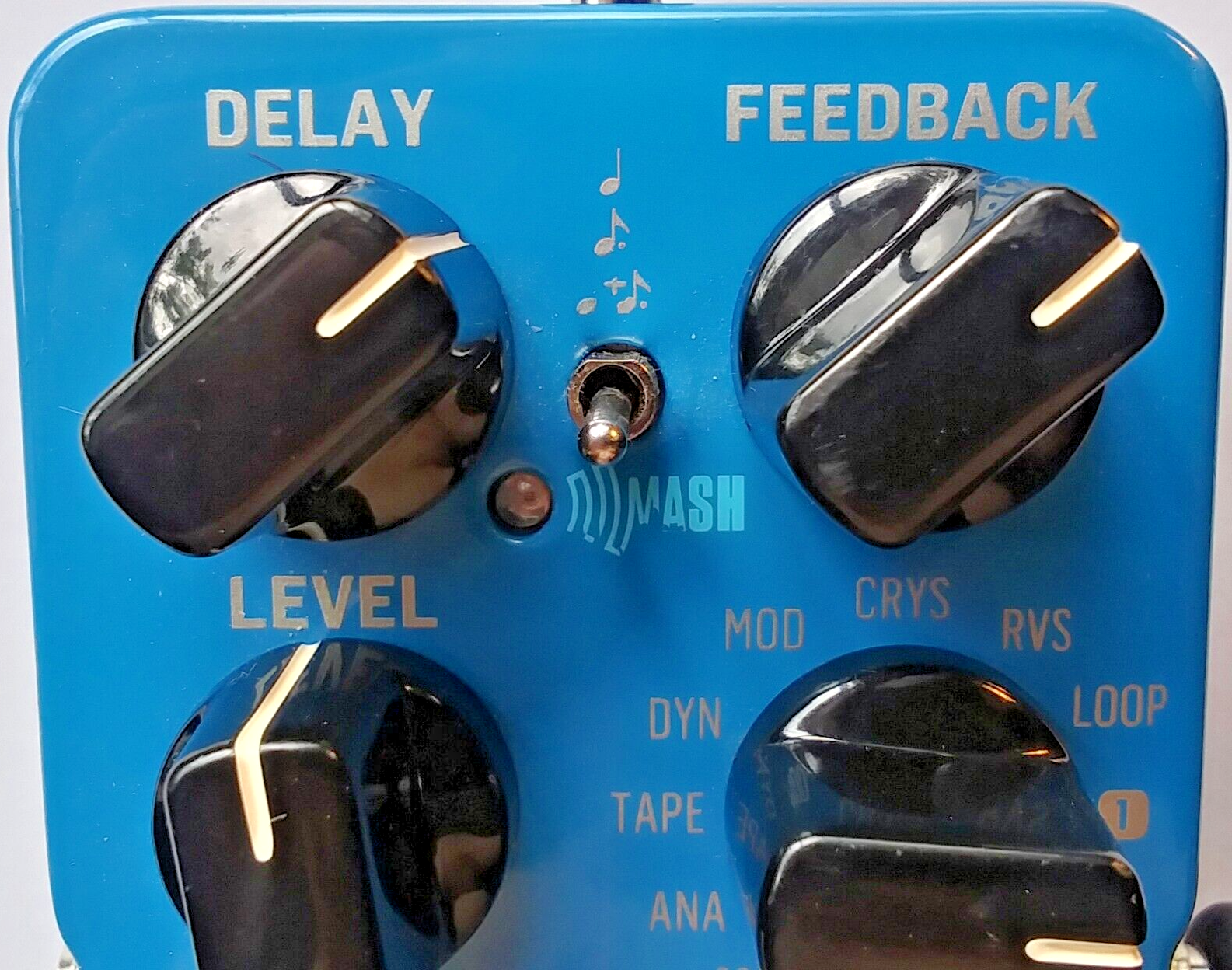The innovative MASH footswitch gives the Flash 2 pedal amazing creative potential. In addition to toggling the delay effect, this pressure-sensitive footswitch can be used in a similar fashion to an expression pedal. Use it to swell the delay mix, bring modulation to the repeats, and even increase the feedback amount. Or assign other parameters to the MASH footswitch for even more sonic creativity.