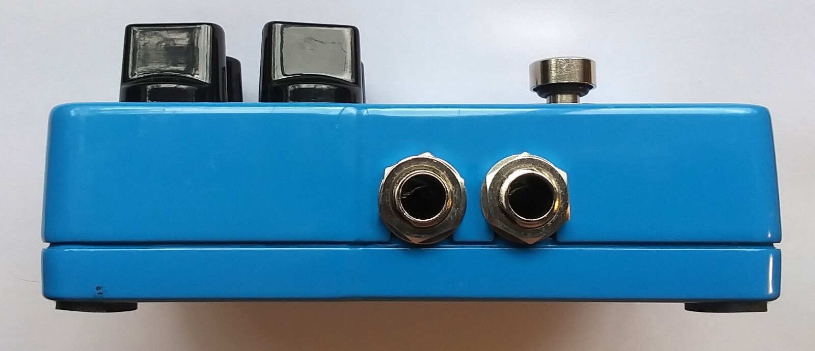 This pedal is Mono or Stereo In, and Mono or Stereo Out, and has Delay, Level, Feedback and Effect Selector dials (including a 40 sec. Looper option), plus a 3-way toggle switch, LED light, and a true bypass switch to turn it on and off. It is also very well built!