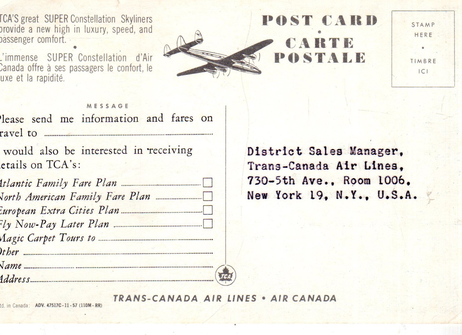 Primary image for TCA's Super Constelations (Trans Canada Airlines) Postcard