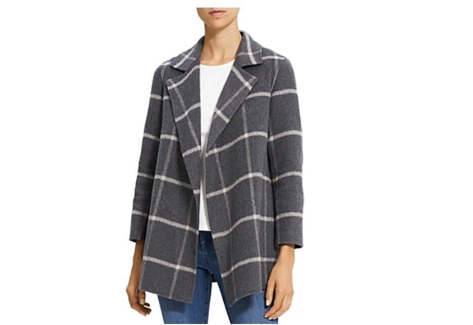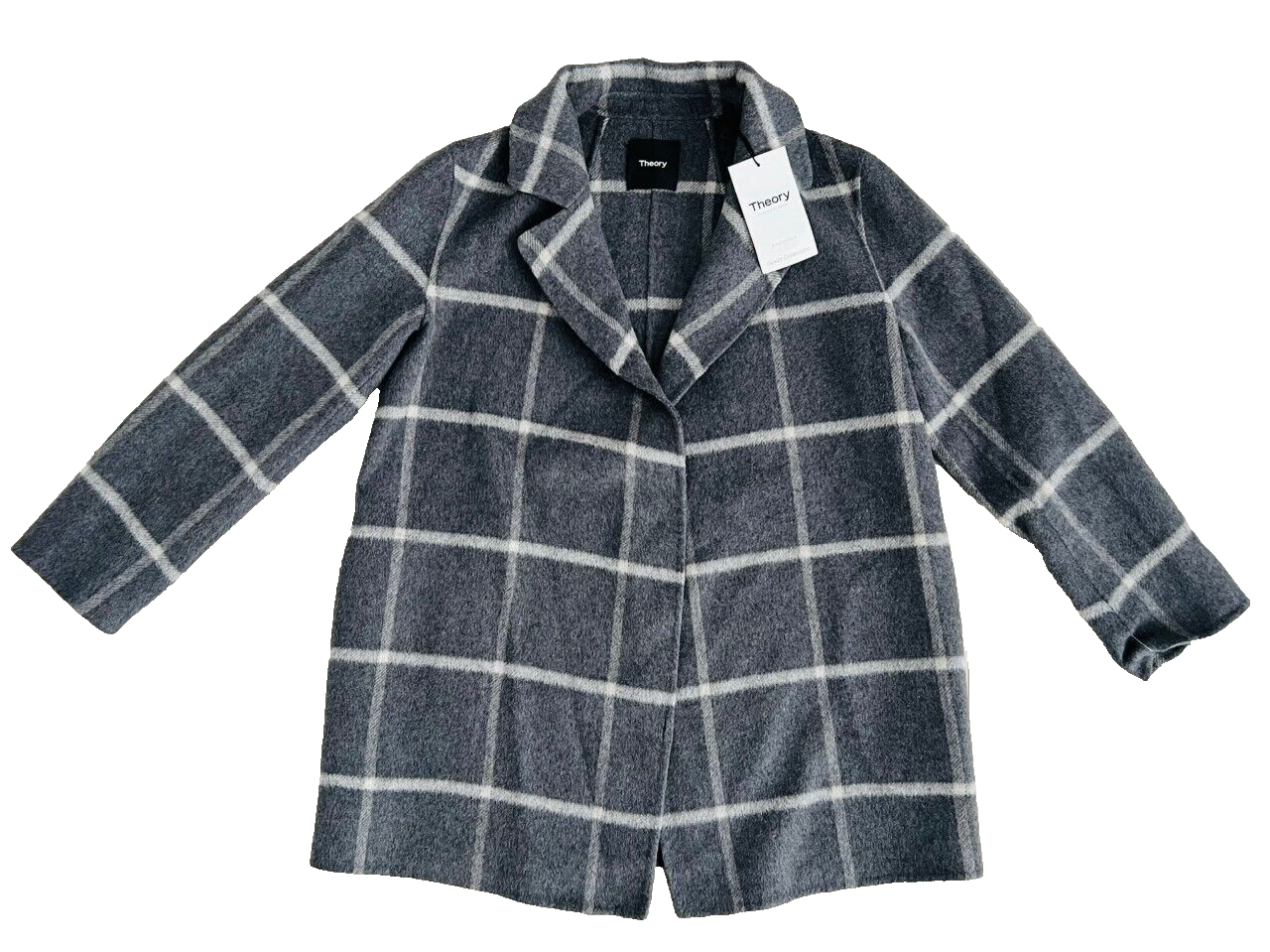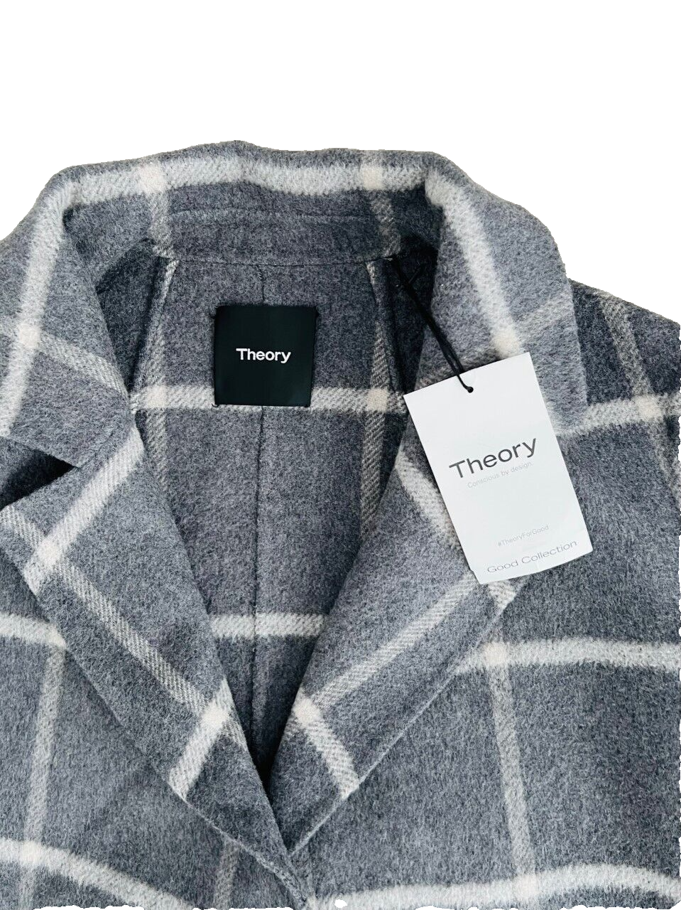 THEORY Clairene Woolten Check Bracelet-Sleeve Jacket Grey ( S )