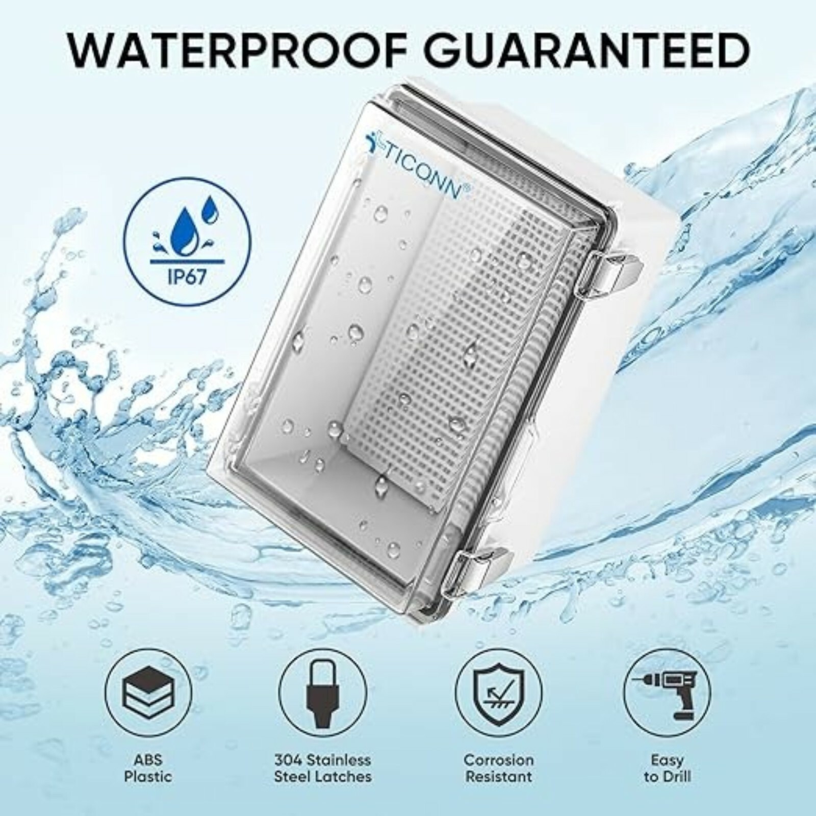 TICONN 8.7 x 6.7 x 4.3" Waterproof Electrical Junction Box IP67 Clear Cover
