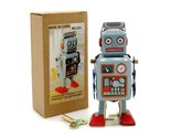 TIN TOY ROBOT 4.5" Wind Up Blue Litho Retro Collectible Cute Mini Radicon MS294
