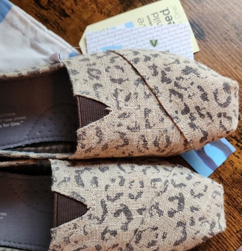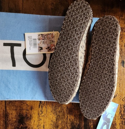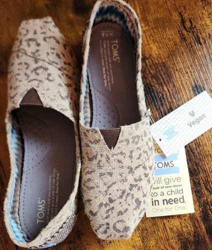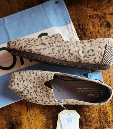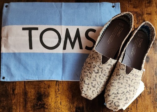 This Sale is for One (1) Pair of TOMS Shoes Model of shoe ~ Snow Leopard Women's Size 7.5 Rubber outsole measures approximately 9.75" heel to toe 3" at the widest point (ball of foot area) Slip-on flats Multicolored ~ leopard pattern Earthwise textile uppers ~ recycled cotton canvas Recycled cotton lining and footbed Elastic gore for an easy fit Non-removable insole ~ 50% eco content (25% recycled PU Foam ~ 15% recycled rubber ~ 10% bio oil) Soft cushioned footbed Cloth bag for storage is included Shoes are new with tags Please view photos for a good description of this item Thank you!