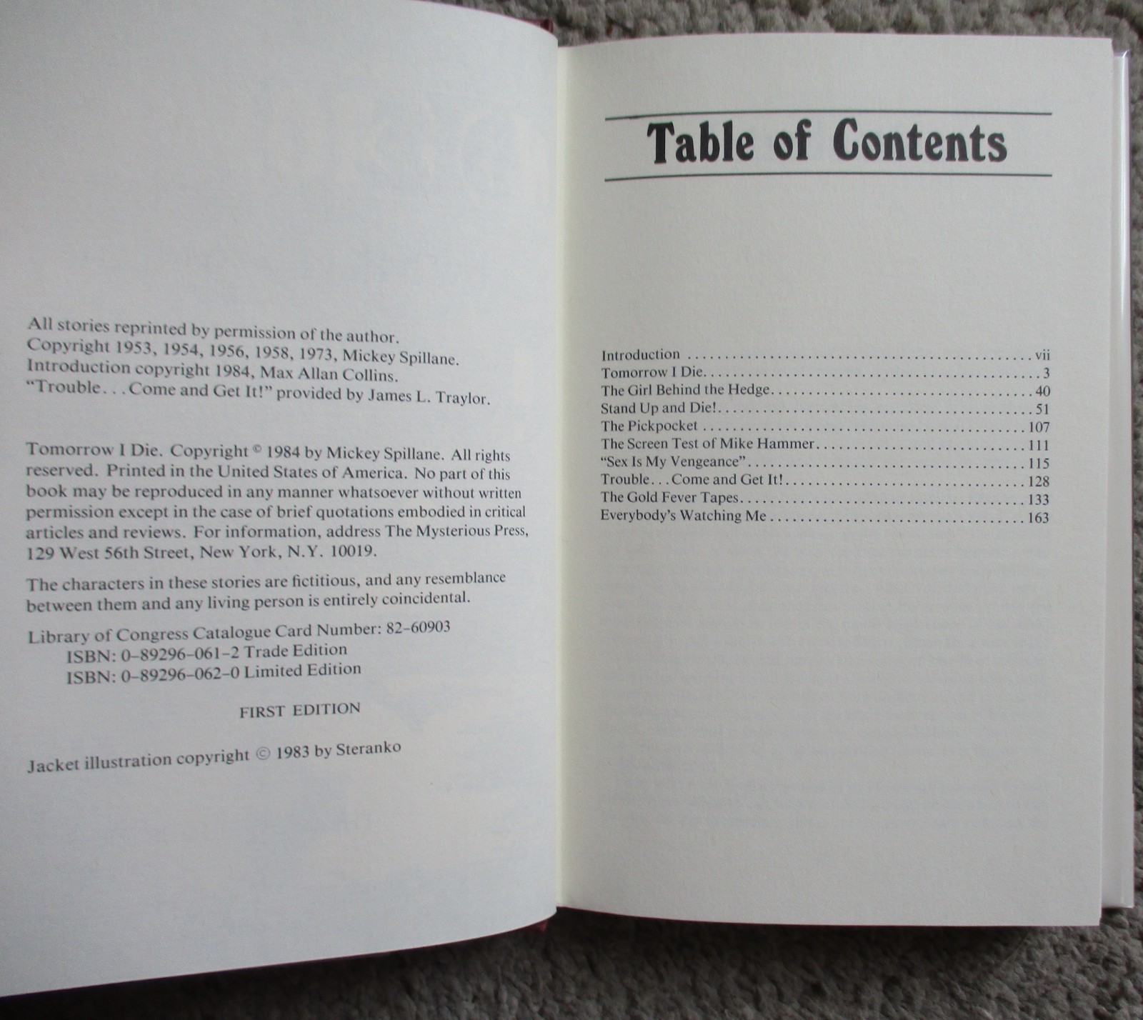 - TOMORROW I DIE (1984) Mickey Spillane -Mysterious Press Short Story Collection