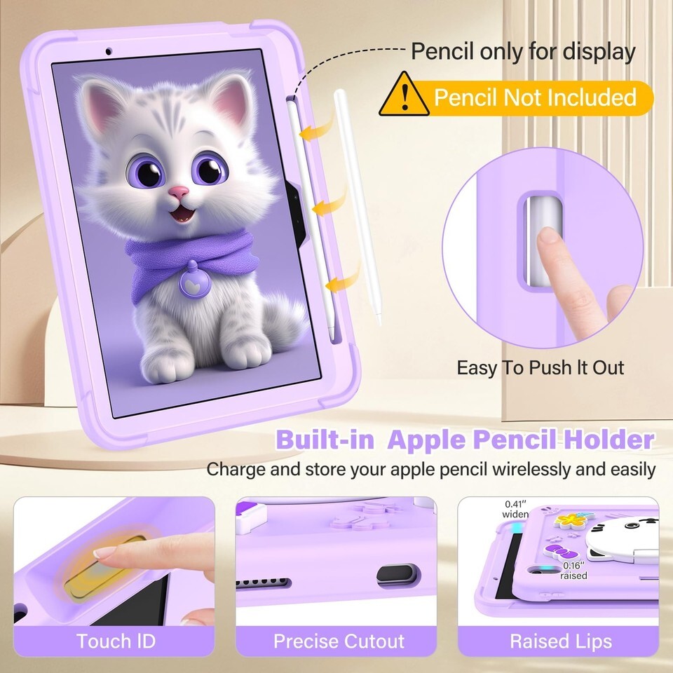 Built in Pencil Holder Cute Cat Kickstand : iPad Air 11 Case built-in Pencil holder allows you to store and carry your Apple pencil easily.The vivid cute cat kickstand design frees your hands and makes your iPad unique. Adjust the best angle to watch the video, working and typing.(APPLE Pencil is NOT included)