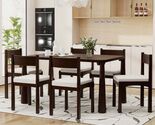 - TREXM 7-Piece Wood Dining Set for 6 w/ Upholstered Chairs, Espresso