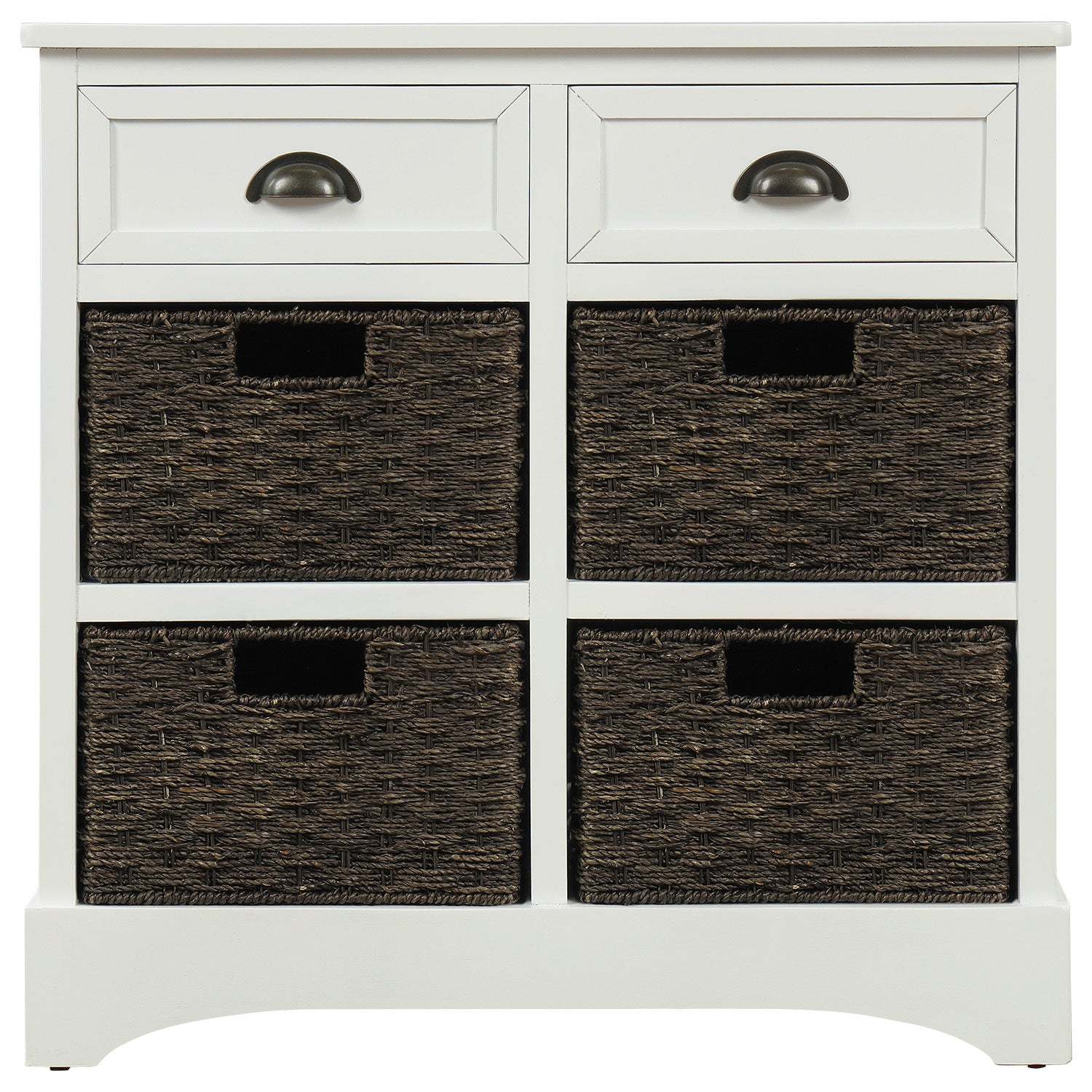 TREXM White Rustic Storage Cabinet: 2 Drawers, 4 Rattan Baskets