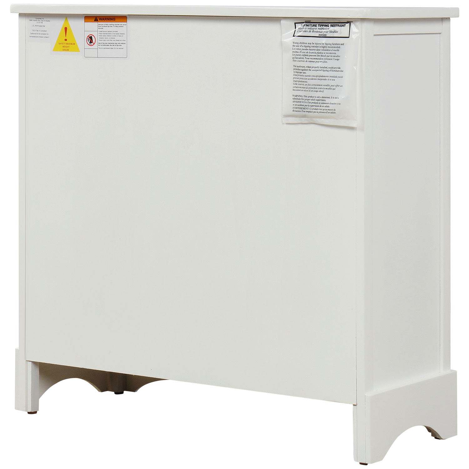 The combination of the distressed acacia wood with the wicker baskets gives this unit a modern farmhouse feel that would look great as a nightstand or a hallway unit.This exquisite cabinet with rubber pads at the bottom is suitable for any space, making your space dust free.Weight capacity: 400 LBS