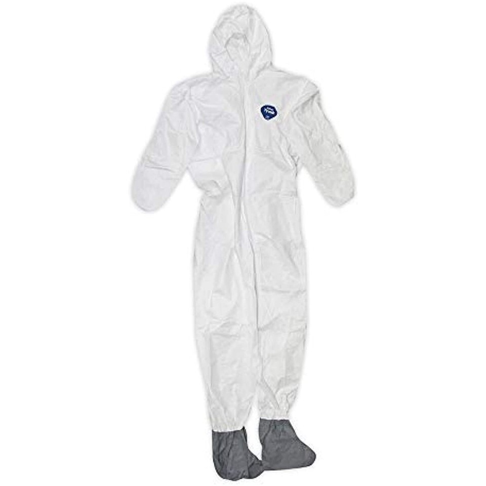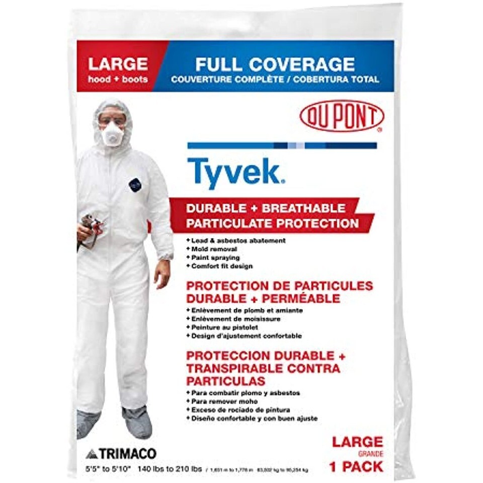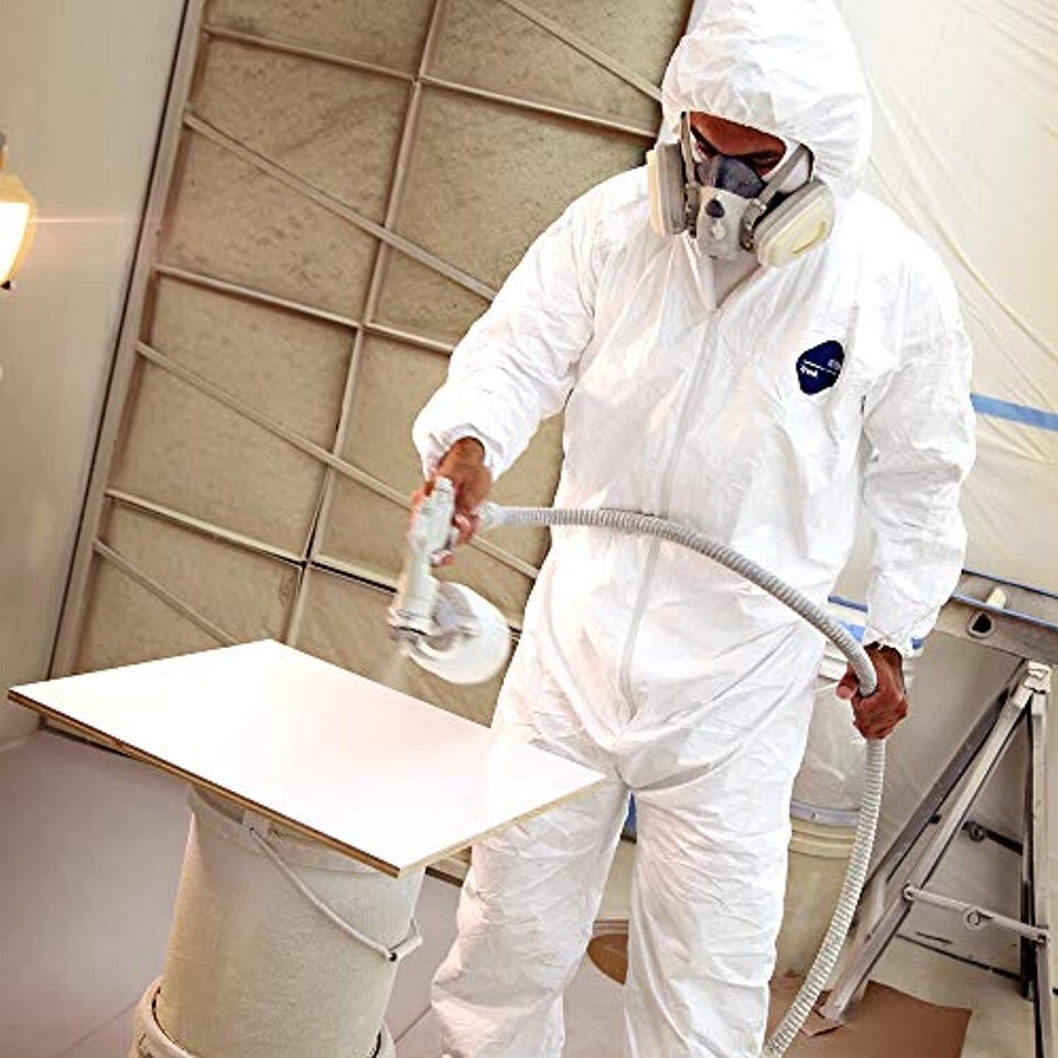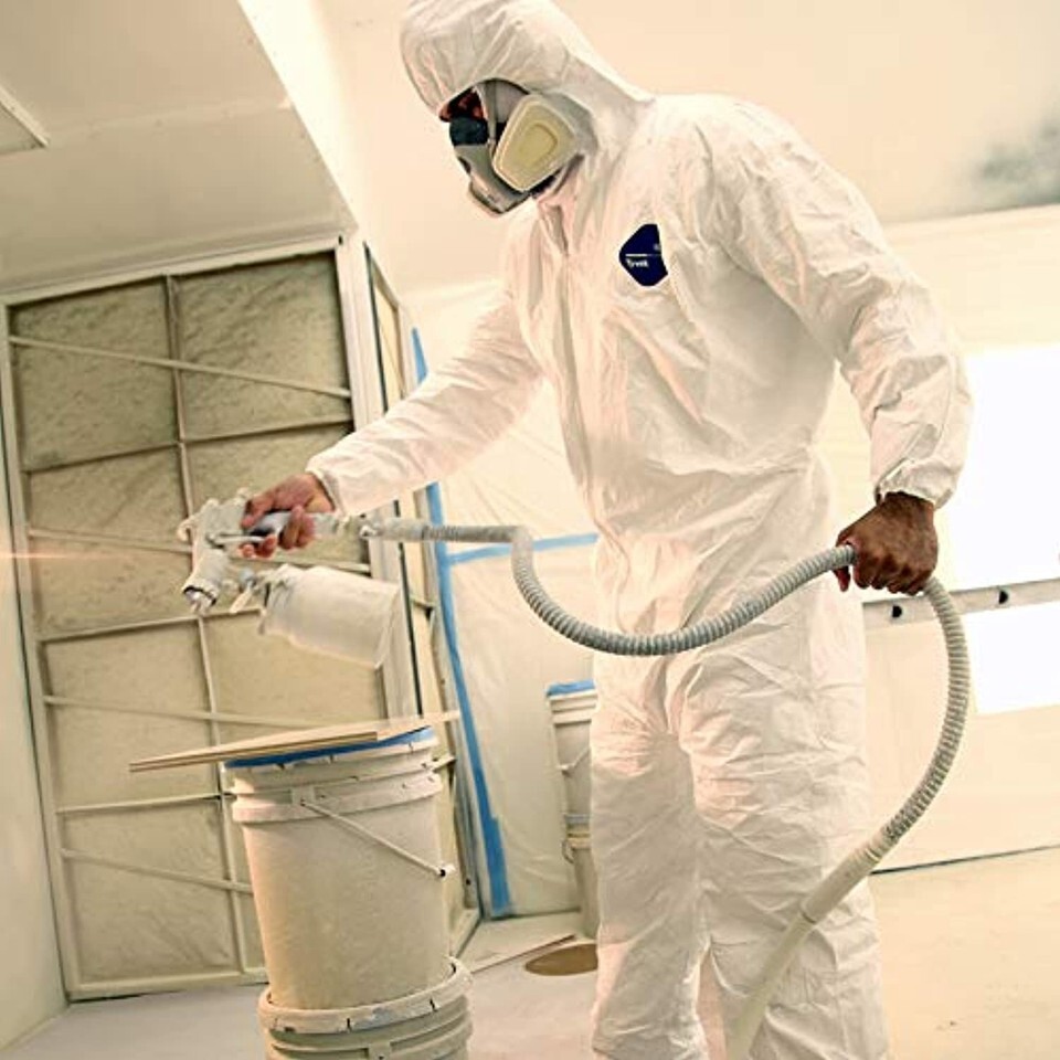 Full coverage protective coveralls have elastic wrists and ankles, hood, and boots. Comfort fit design allows for a greater range of motion. Breathable inherent barrier protection against hazardous dry particles, aerosols, and non-hazardous light liquid splash.