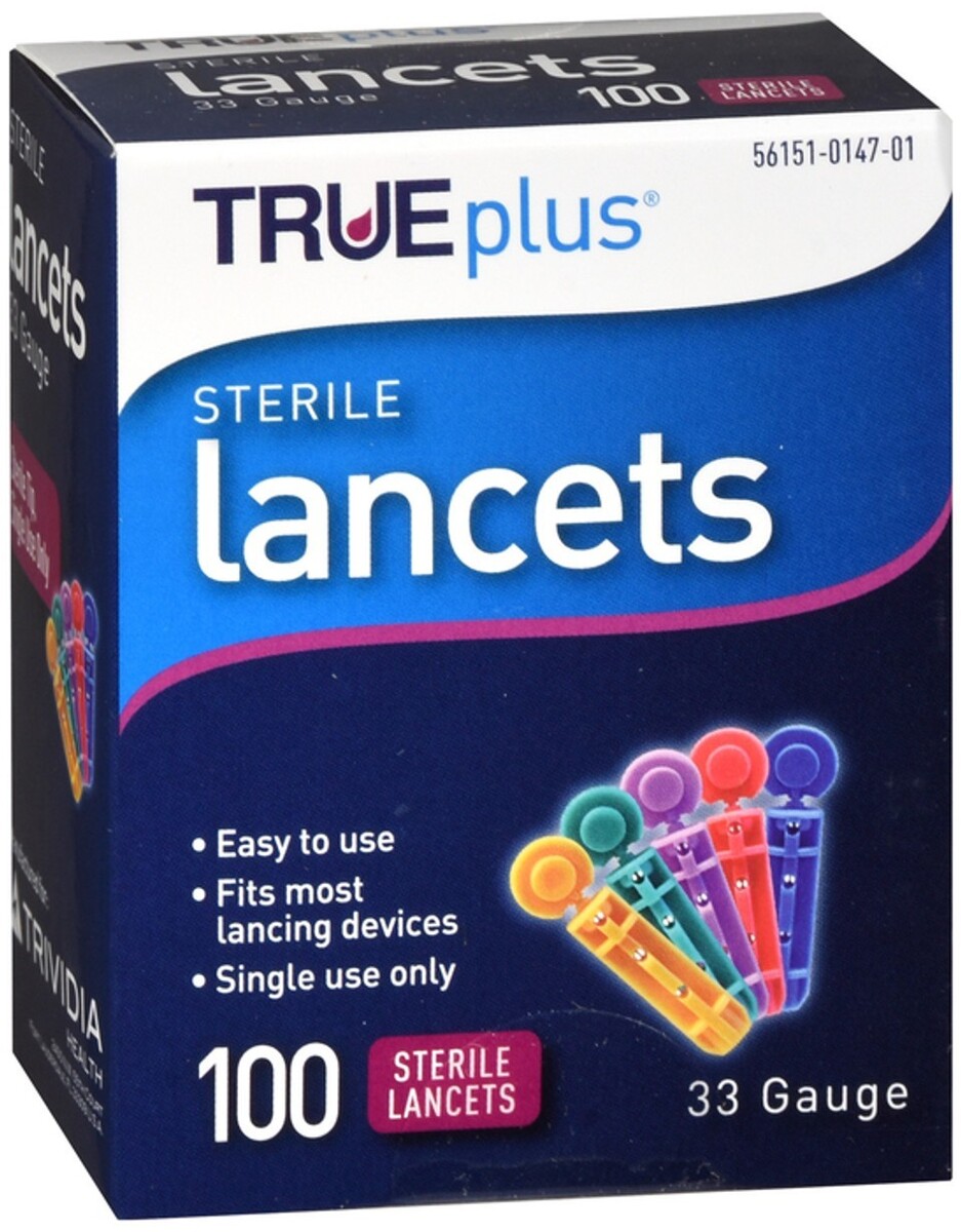 - TRUEplus Sterile Lancets ~ 33 Gauge ~ BOX OF 100 ~ EXP Date 01/01/30 ~ Sealed
