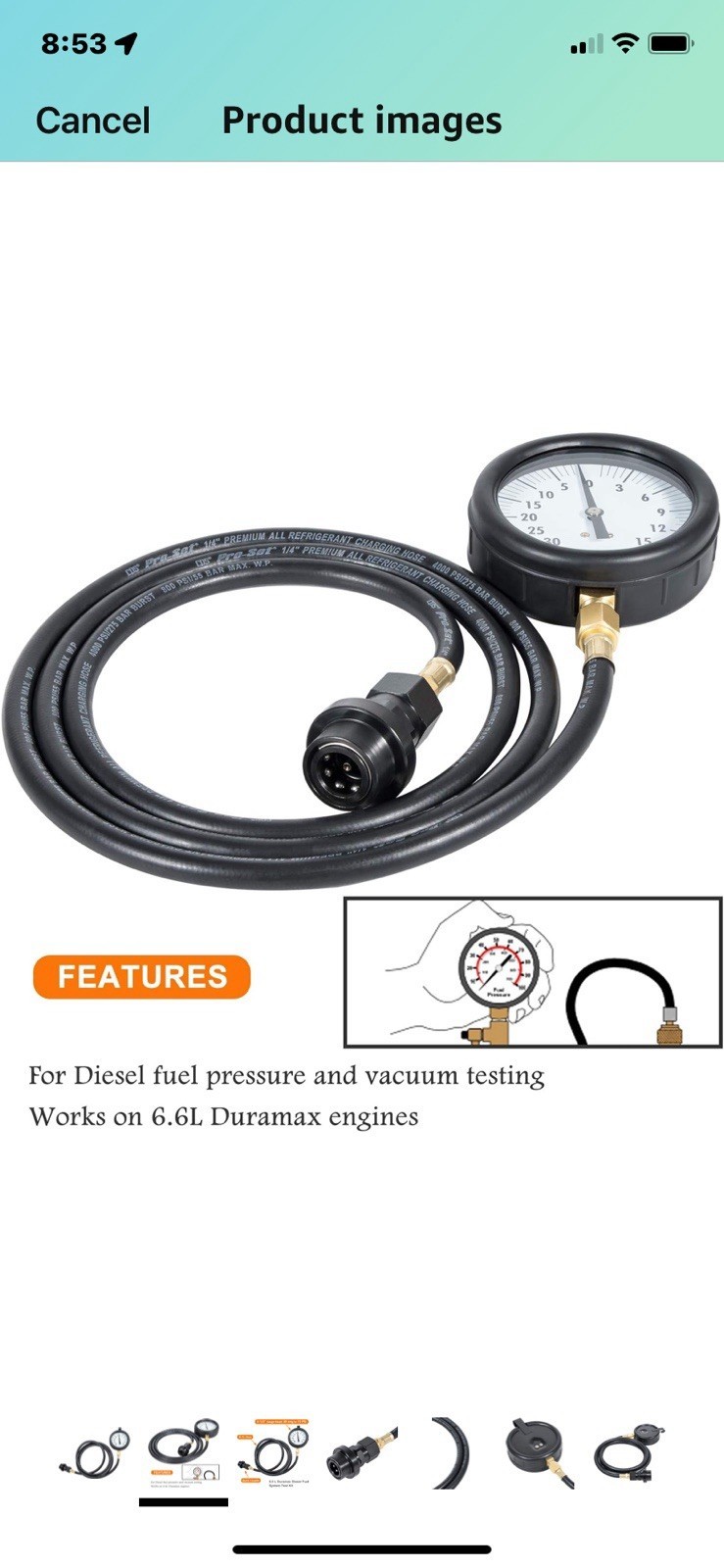 The TU-32-6 6.6L for GM Duramax Diesel Fuel Pressure System Test Kit is a reliable tool designed specifically for GM 6.6L Duramax Diesel Engines. It comes with a 1-year warranty, black color, and includes a gauge hook for easy testing. Made of durable rubber material, this kit also features hoses for added convenience in detecting leaks in the fuel pressure system. Perfect for diesel engine enthusiasts looking to ensure optimal performance and efficiency.
