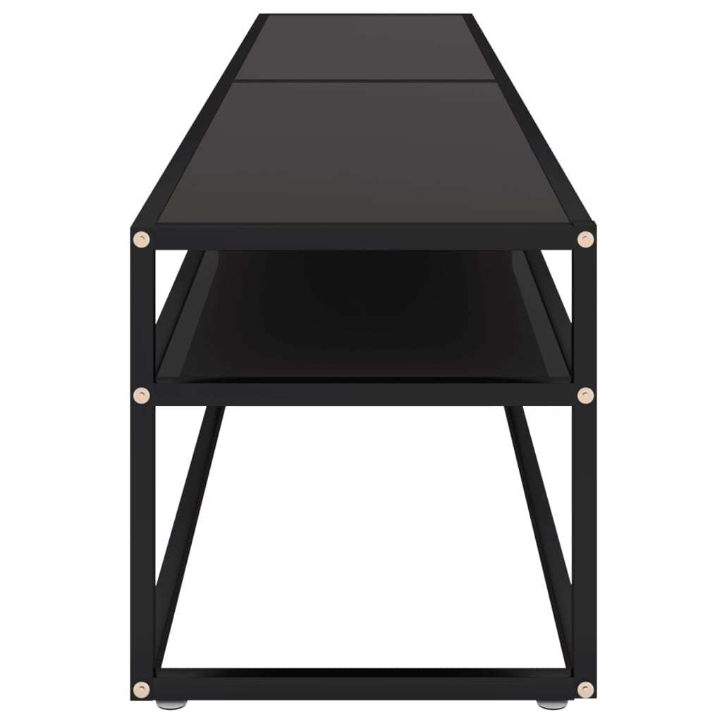 This modern TV cabinet mixes stylish looks with practical design, making it the centerpiece of any living room. Its powder-coated steel frame and sleek black tempered glass shelves create a lovely balance that lifts the look of your entertainment area.