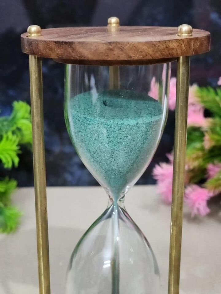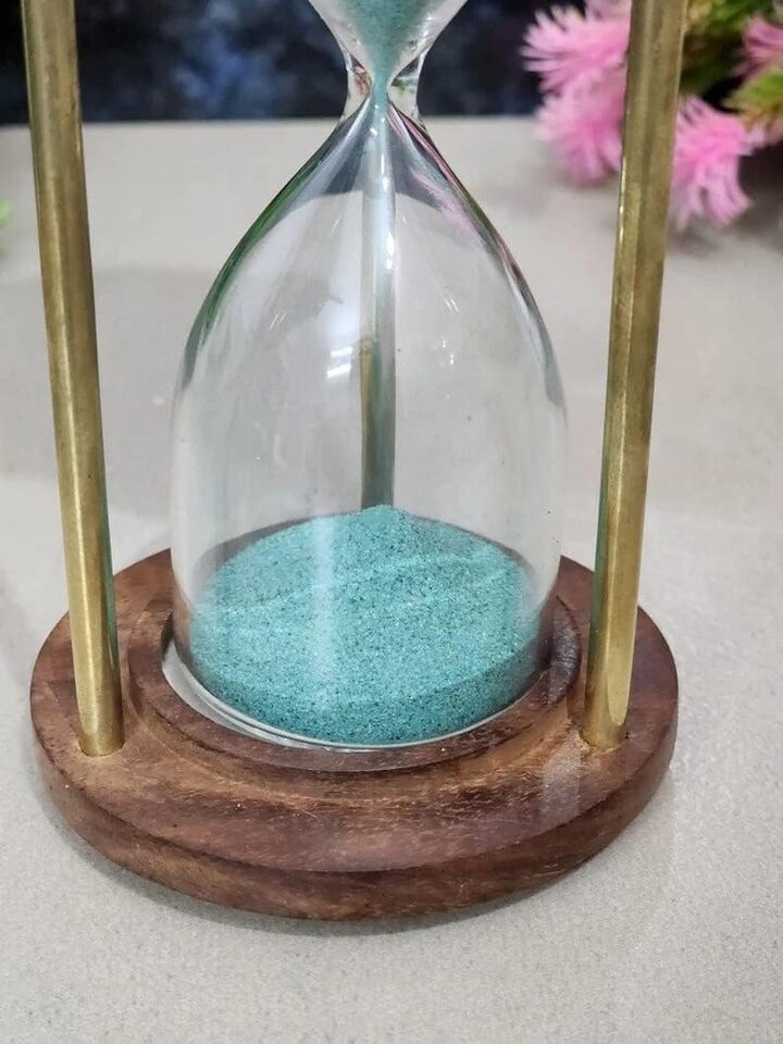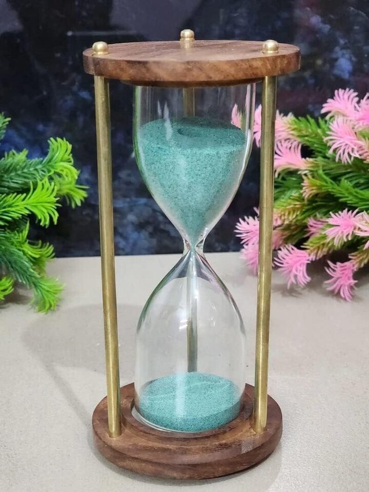 Table Wooden Timer Sand Gift Hourglass Decor Brass Vintage Antique Nautical 4''