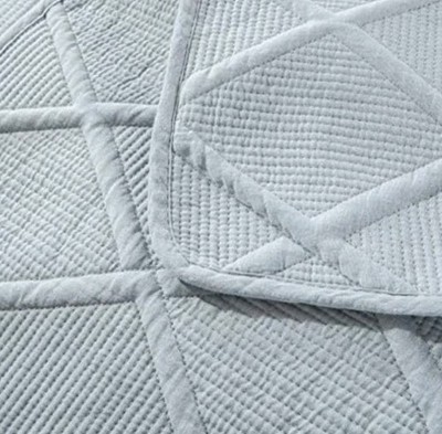 Made with solid colored fabric and a reversible matelasse geometric quilted stitching pattern.