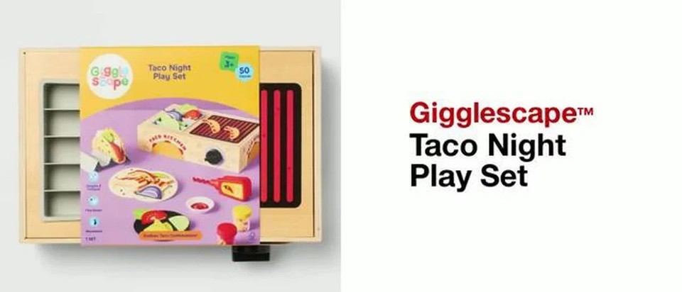 The Taco Night Play Set by Giggle Scape is a colorful and creative kitchen set designed for preschoolers aged 3-4 years. Made of durable plastic, this toy kitchen allows children to engage in imaginative play and develop their culinary skills. With a whimsical design and interactive features, this play set is sure to provide hours of fun and entertainment for young children.