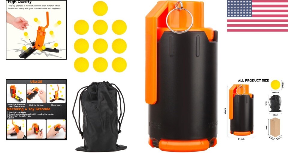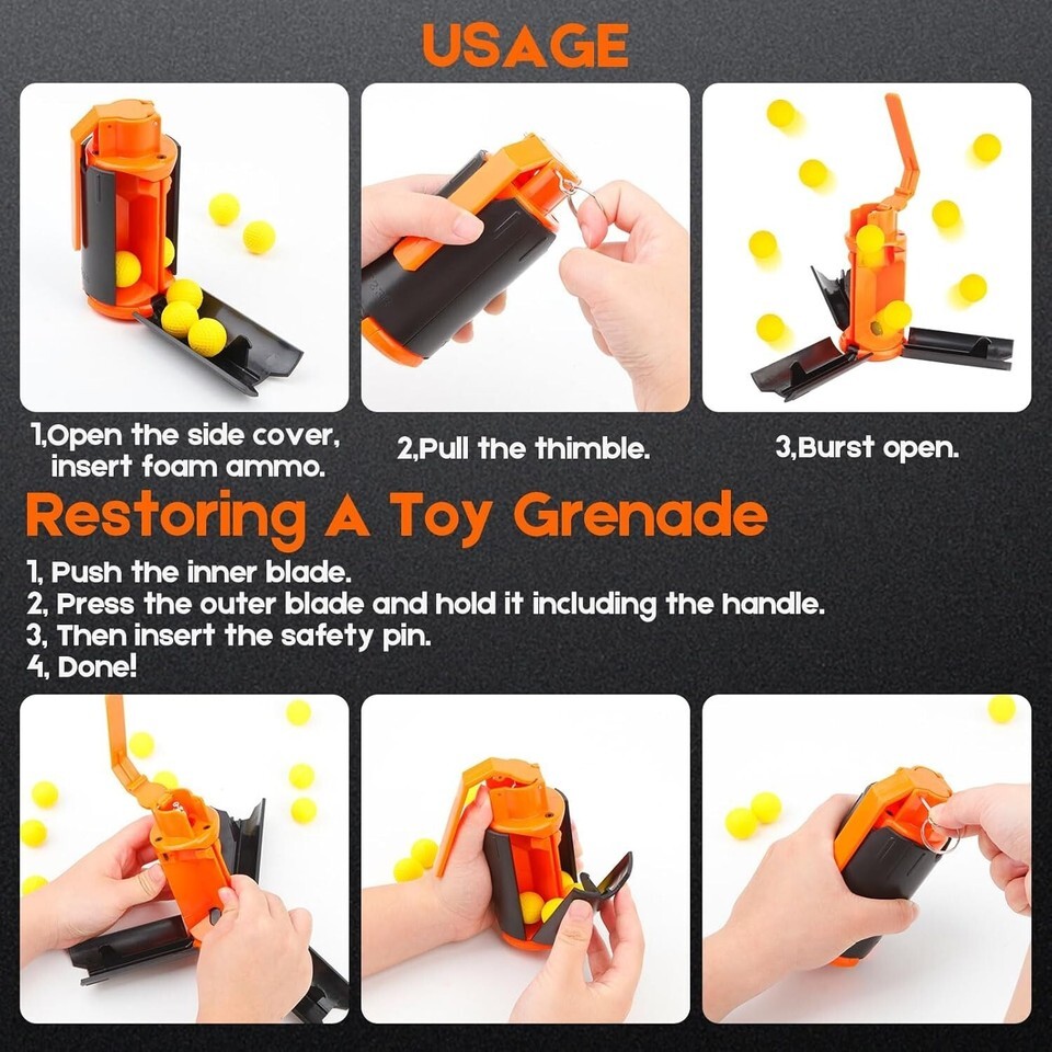 - Tactical Toy Grenade for CS Battle - Includes 10 Foam Balls & Realistic Pin