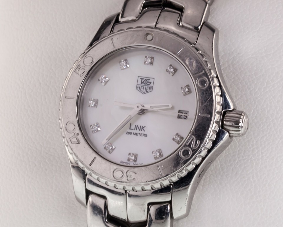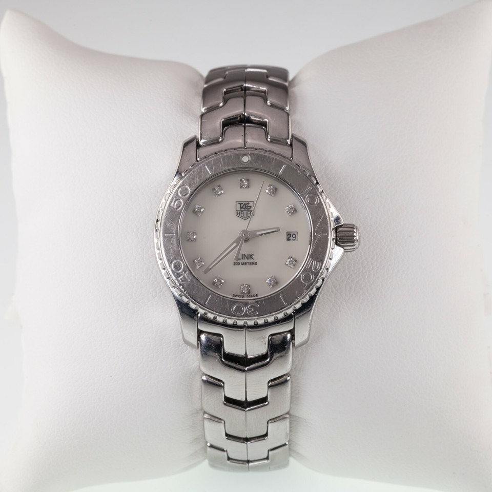 - Tag Heuer Stainless Steel Women's Quartz Link Watch w/ MOP Diamond Dial WJ1319