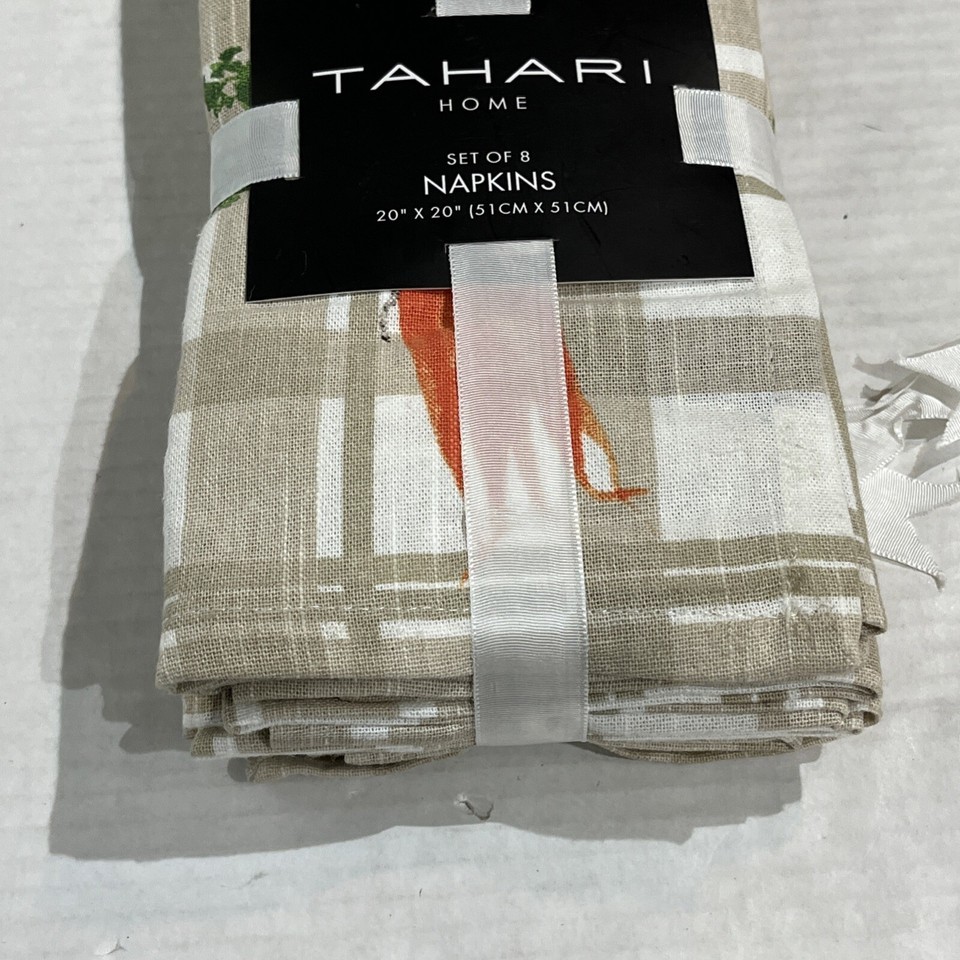 Tahari Napkin Set Brown Plaid Easter Dinner Carrots Spring Classic Set Of 8