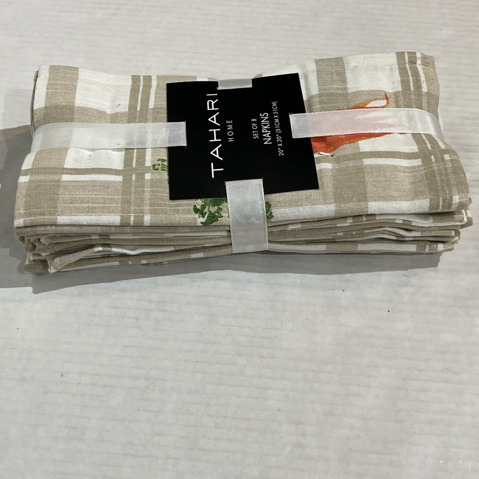 - Tahari Napkin Set Brown Plaid Easter Dinner Carrots Spring Classic Set Of 8