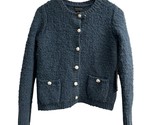 - Tahari Sweater Blazer Womens XL Blue Fuzzy Knit Sliver Buttons Classic Capsule