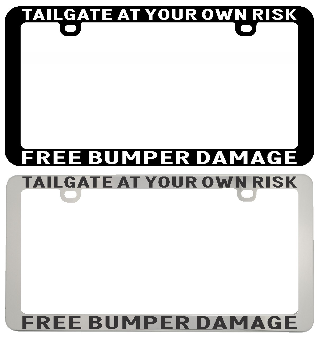 Tailgate At Your Own Risk Free Bumper Damage Assorted Legal License Plate Frame