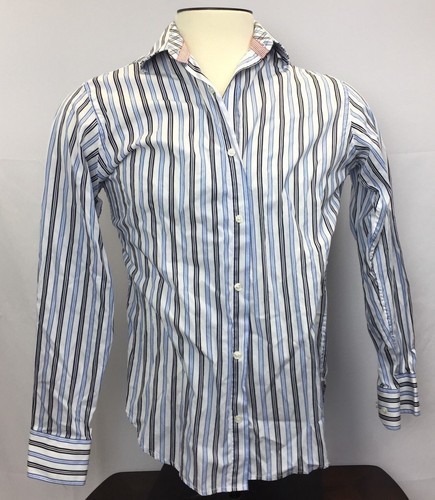 You Are Buying A Black Blue And White TAILORBYRD Stripped Long Sleeve Collard Neck It is in Great Used Condition with No Damage, Stains or Rips The measurements are on the pictures but If you need more measurements please just ask and I will measure for you and I will try and contact you as soon as possible