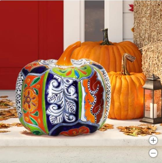 - Talavera Pumpkin Multicolor Ceramic 13" Hand-Painted Indoor Outdoor 15 lbs