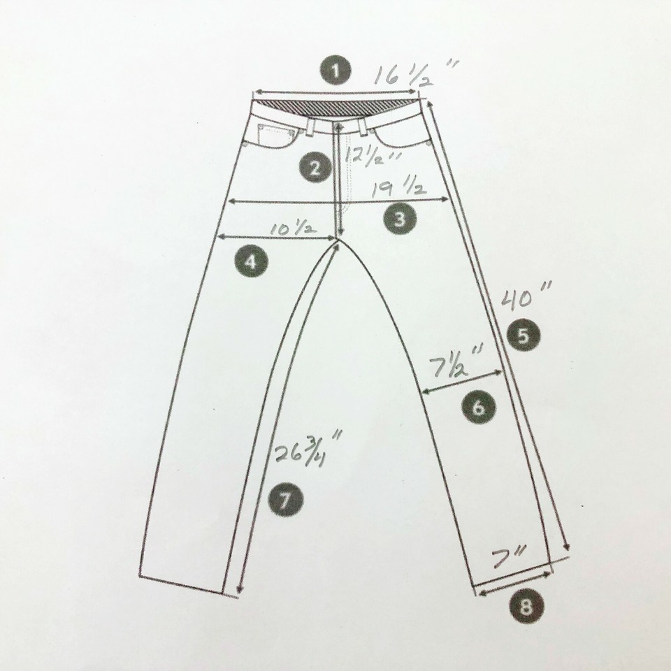 2 back hip pockets still stitched closed, 2 front slit pockets