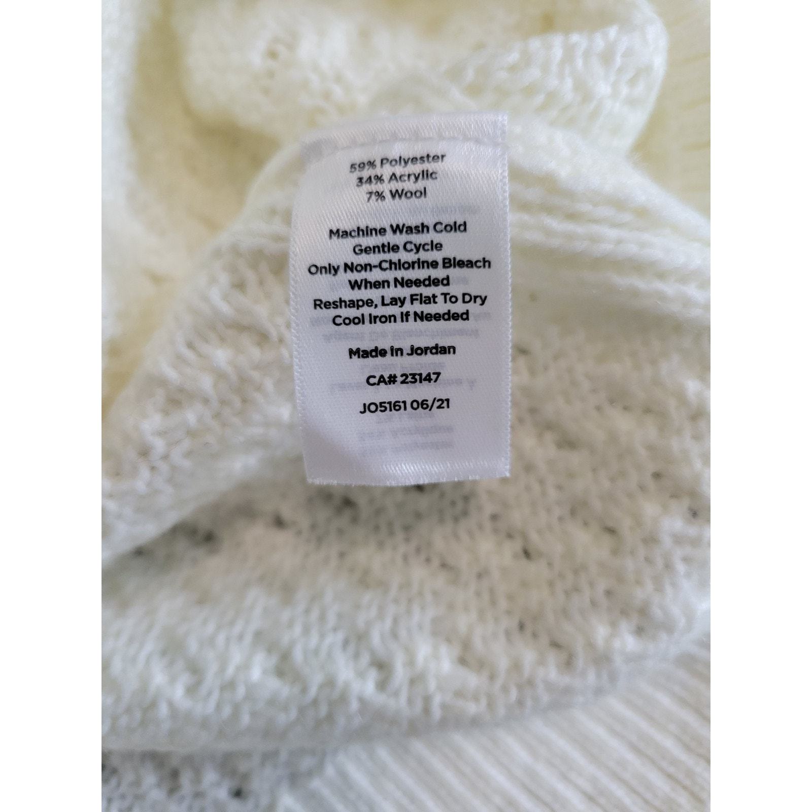 59% Polyester, 34% Acrylic, 7% Wool |