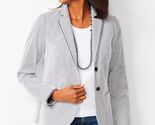 - Talbots Sz 10 Navy White Striped Piped Blazer Jacket Patch Pockets Fully Lined