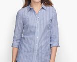 Talbots Sz L Classic Cotton Blue White Dobby Striped Shirt Button Up Blouse