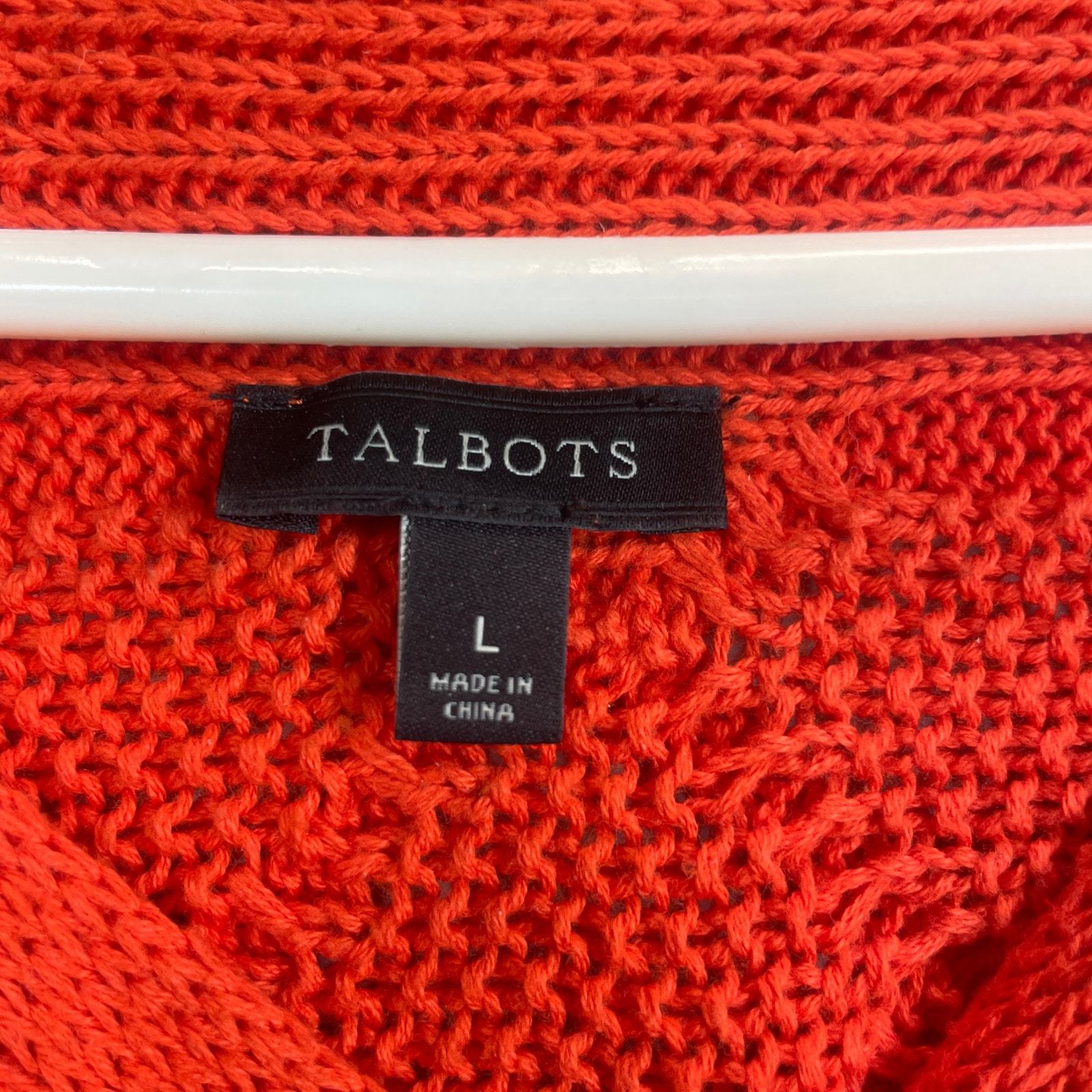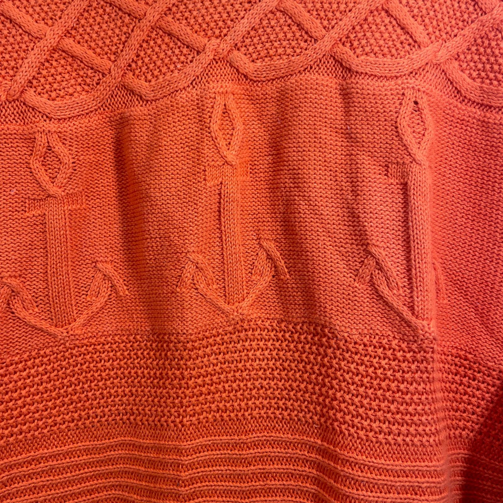 - Talbots Womens Orange Crewneck Nautical Anchors Knit Pullover Sweater Size Large